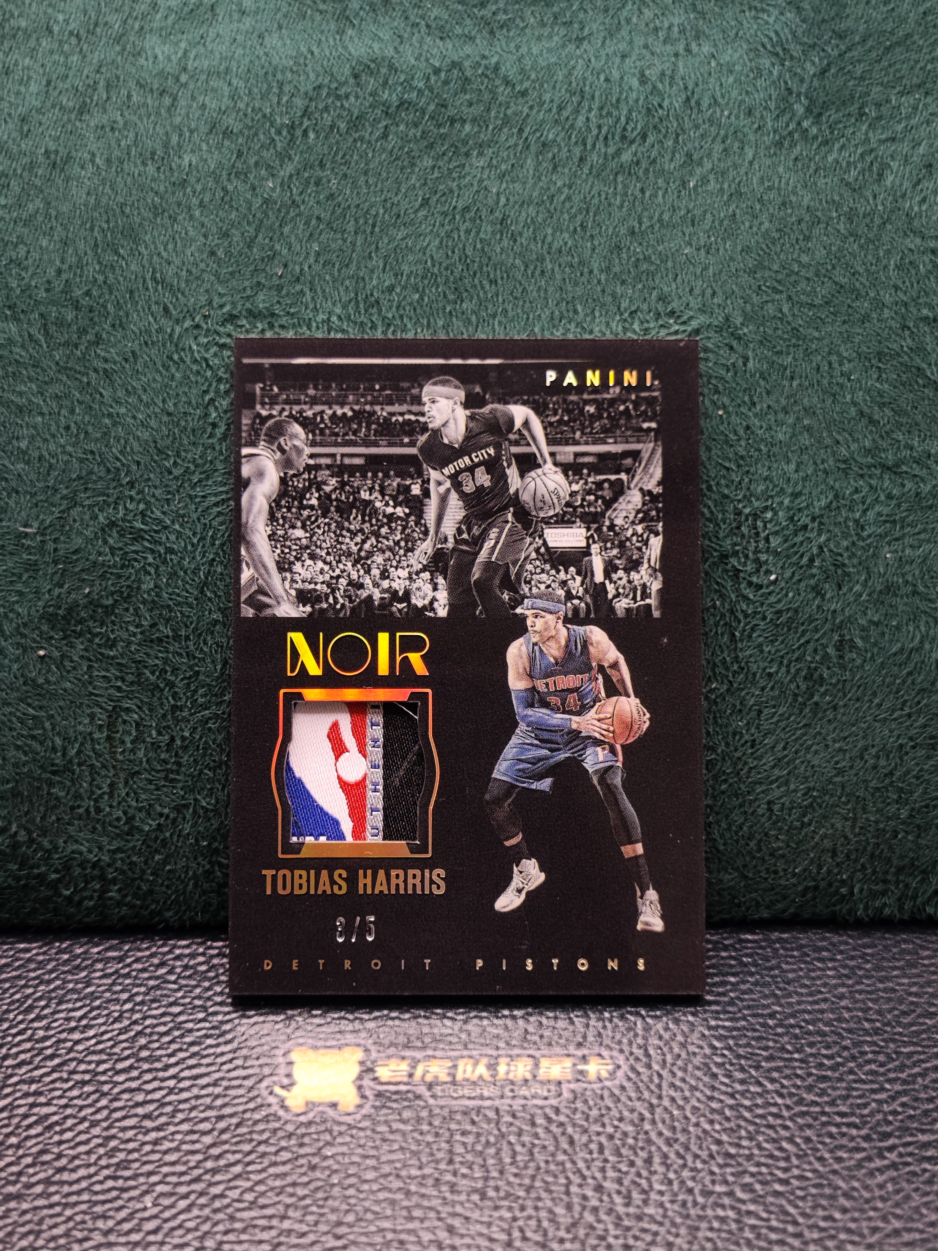 2015-16 【老虎队 cf】panini Noir Tobias Harris 诺尔 托比亚斯 哈里斯 3/5编 超低编 球衣落场物料 暴力切割 logoman patch 活塞 瑕疵如图 z