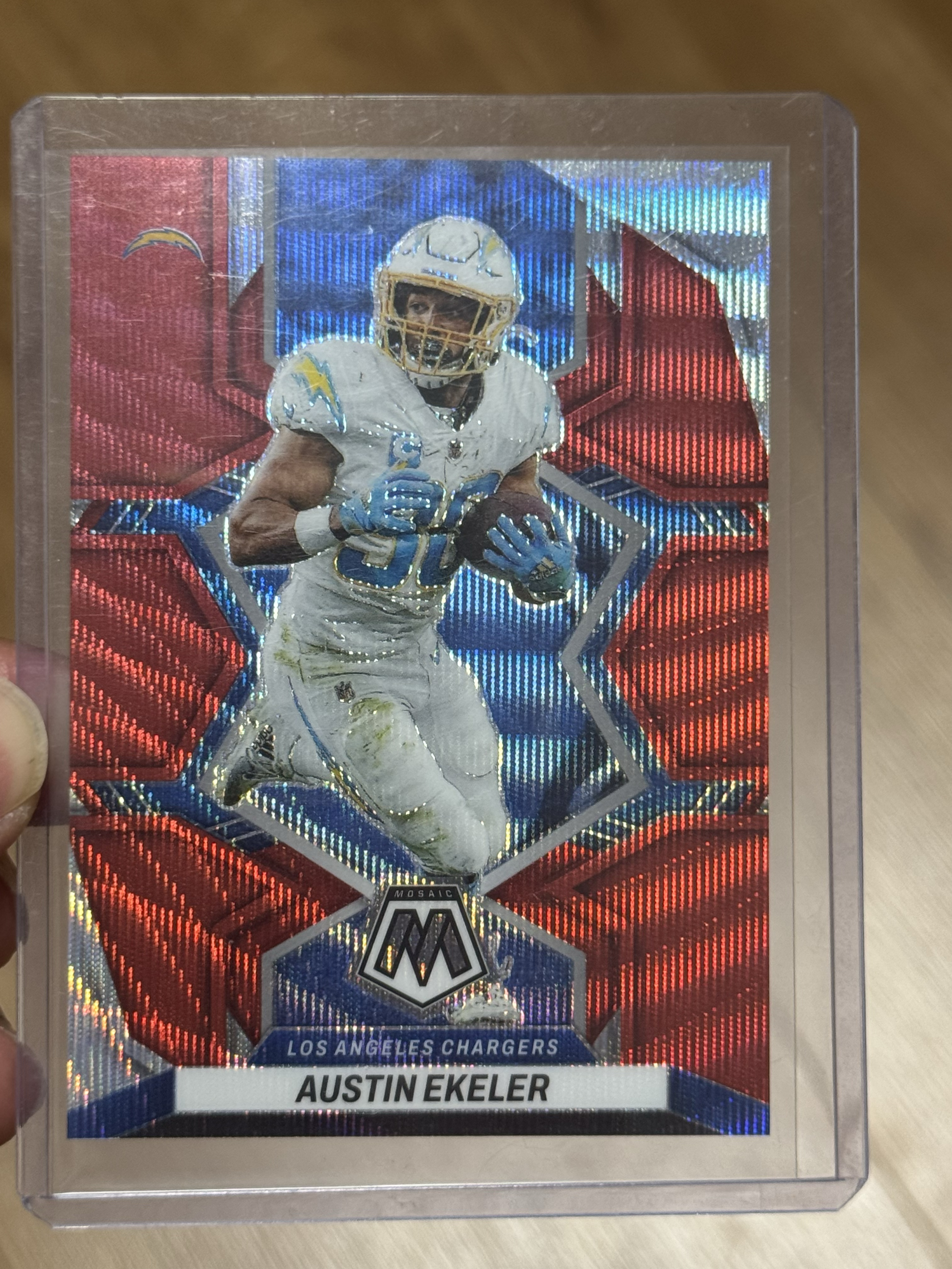 2022 Panini Mosaic Austin Ekeler 马赛克橄榄 洛杉机闪电 奥斯汀埃科勒 1/9首编 亚州红折射 实卡漂亮 专收必备