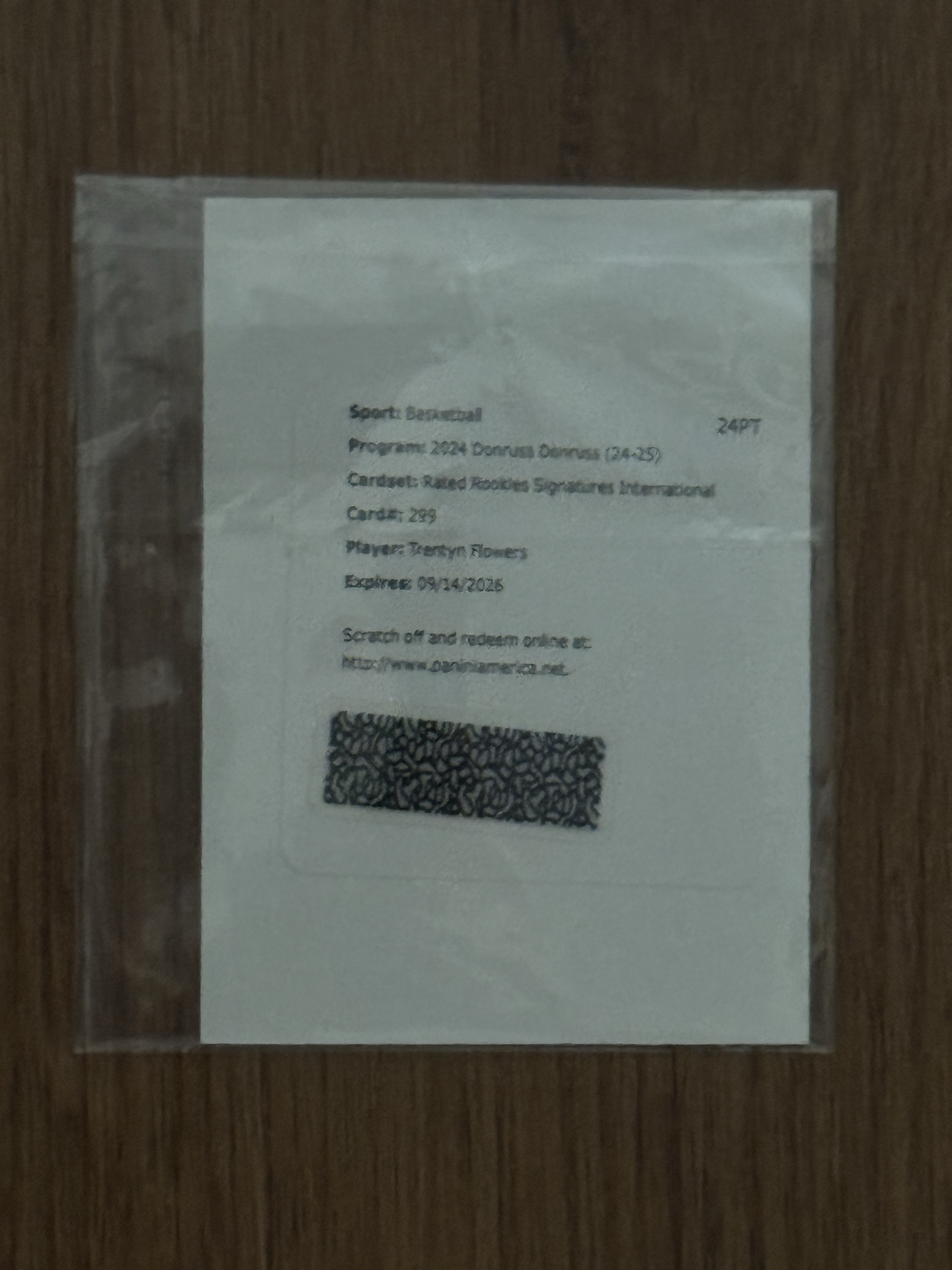 2024-25 Panini Donruss flowers RC 杜蕾斯 洛杉机快船 特伦廷·弗劳尔斯 新秀 国际版 交换板 只快递发板子