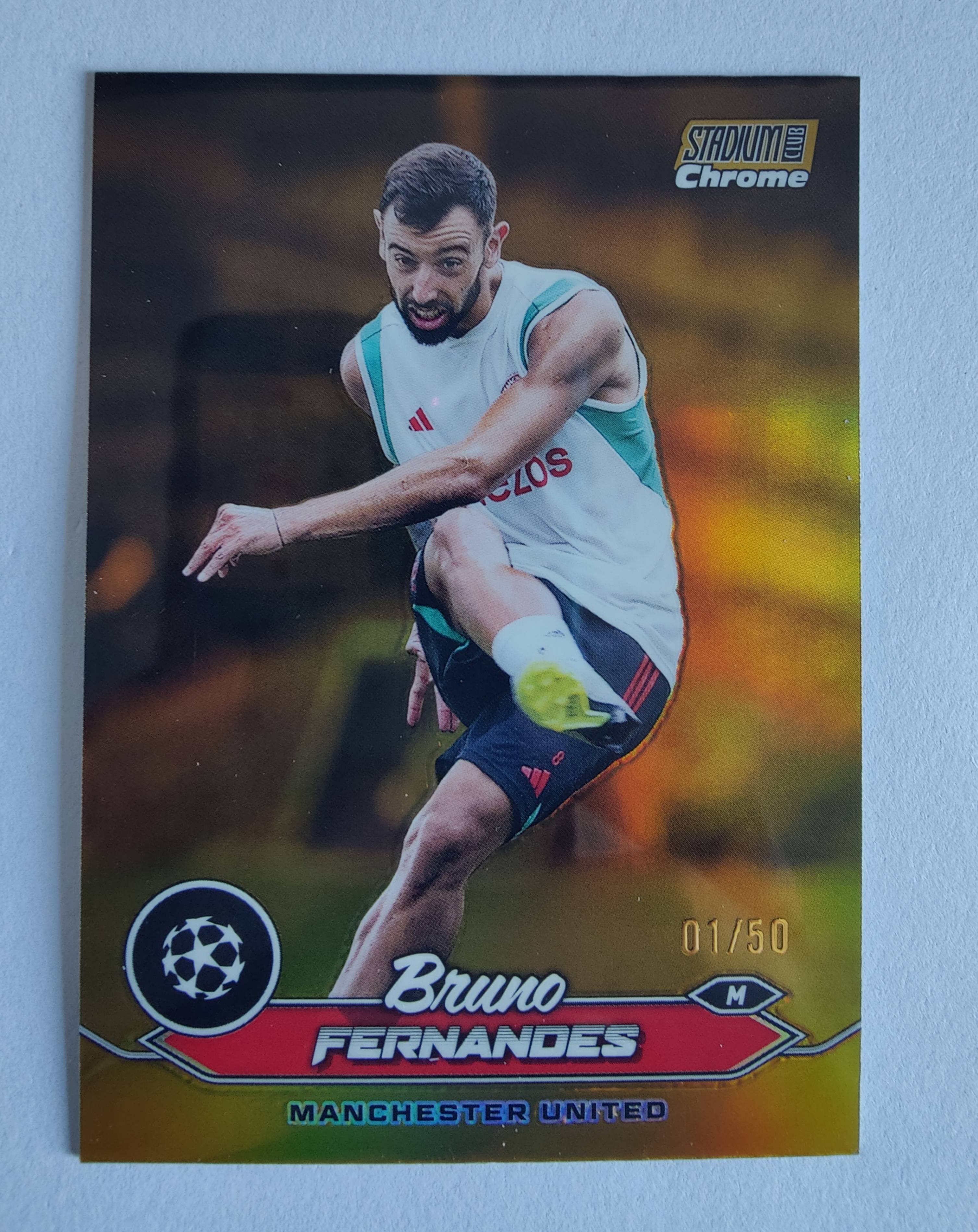 2023-24 Topps Stadium Club Chrome Bruno Fernandes 金折 1/50 首编 相当于1/1 曼联 葡萄牙 布鲁诺 费尔南德斯 竞技场 卡品如图