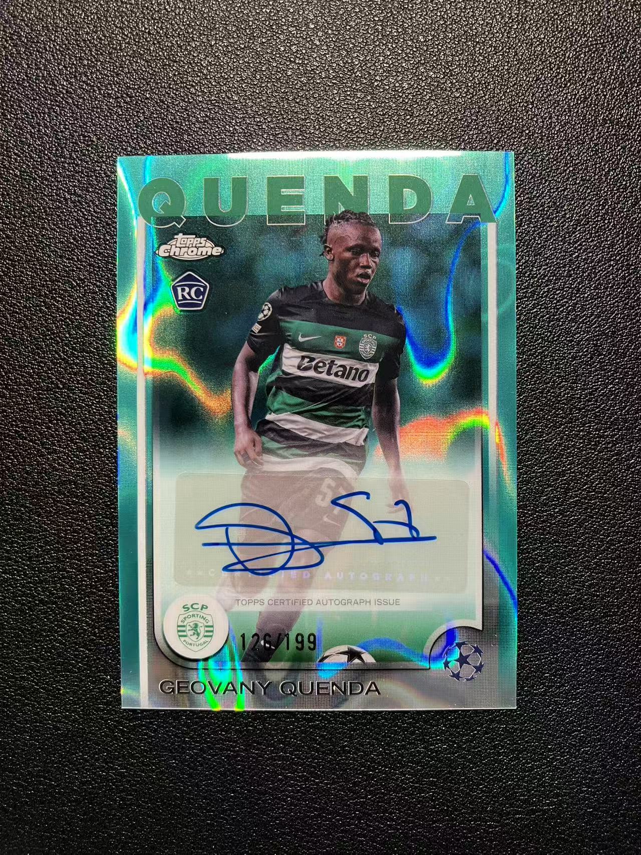 2025 Topps Chrome Geovany Quenda RC 欧冠TC系列 热奥瓦尼-昆达 126/199编 青熔岩折签 签字 RC新秀 绿配绿 葡体 切尔西 葡萄牙天才 卡品如图 B037
