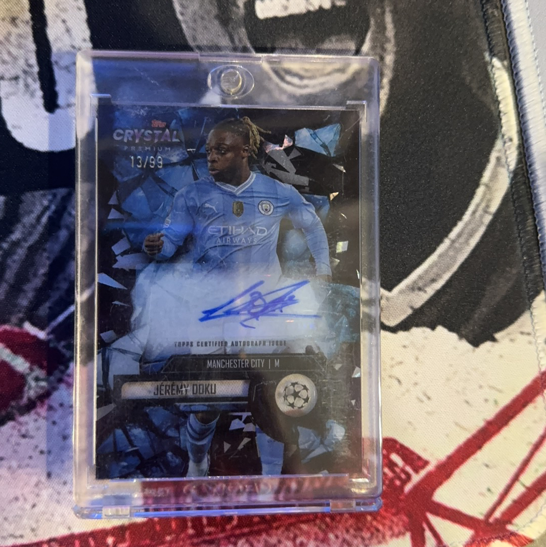 2024 Topps CRYSTAL JEREMY DOKU 欧冠 水晶 曼城 热雷米 多库 99编 黑平行 胶片 签名 签字 收藏必备 顺丰到付 卡品如图