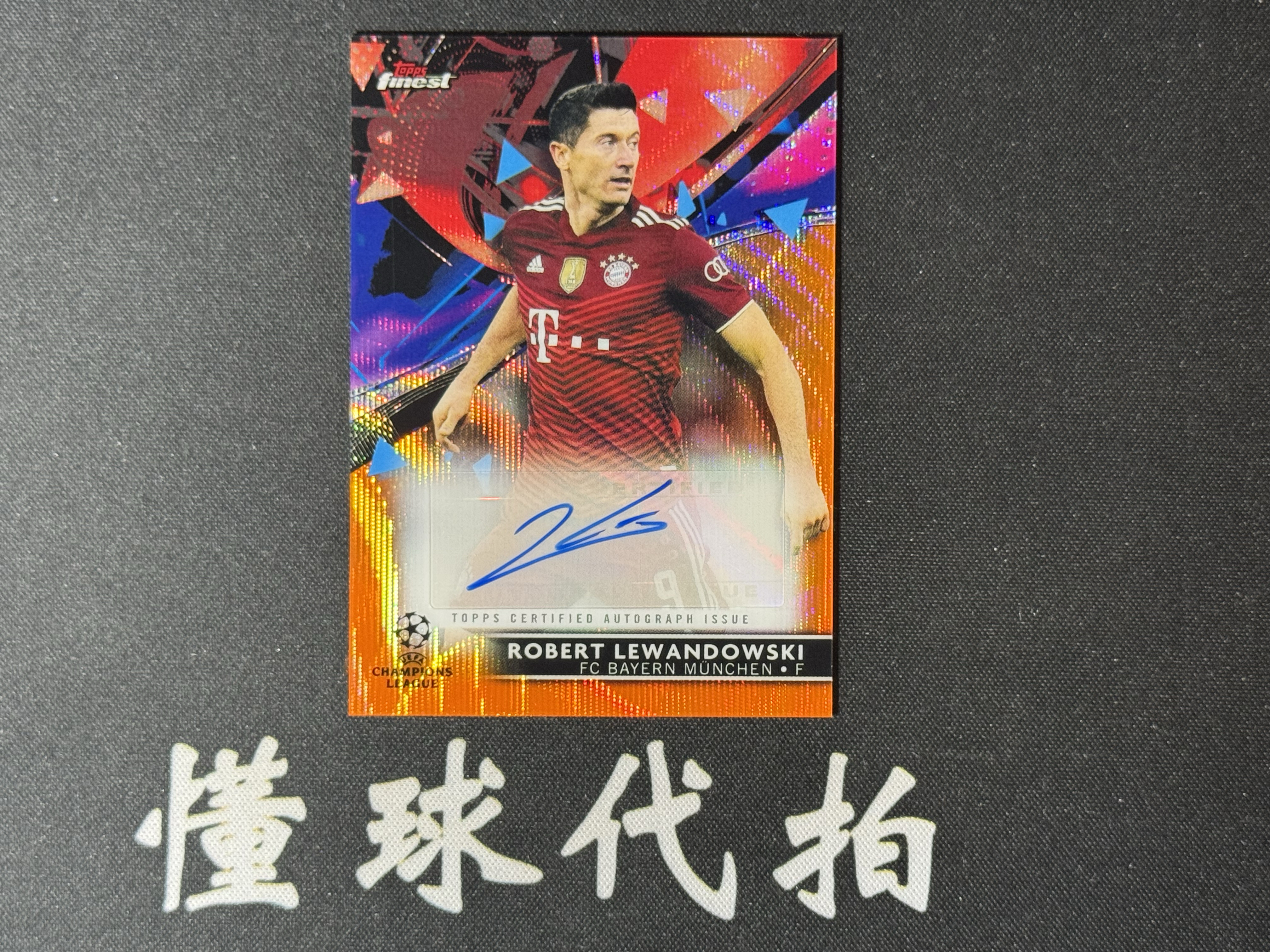 【懂球代拍】2021-22 topps 欧冠finest 限量 25编 ROBERT LEWANDOWSKI莱万多夫斯基 拜仁 巴萨 波兰🇵🇱 签字 橙波纹折射 值得收藏 DQ031A 017
