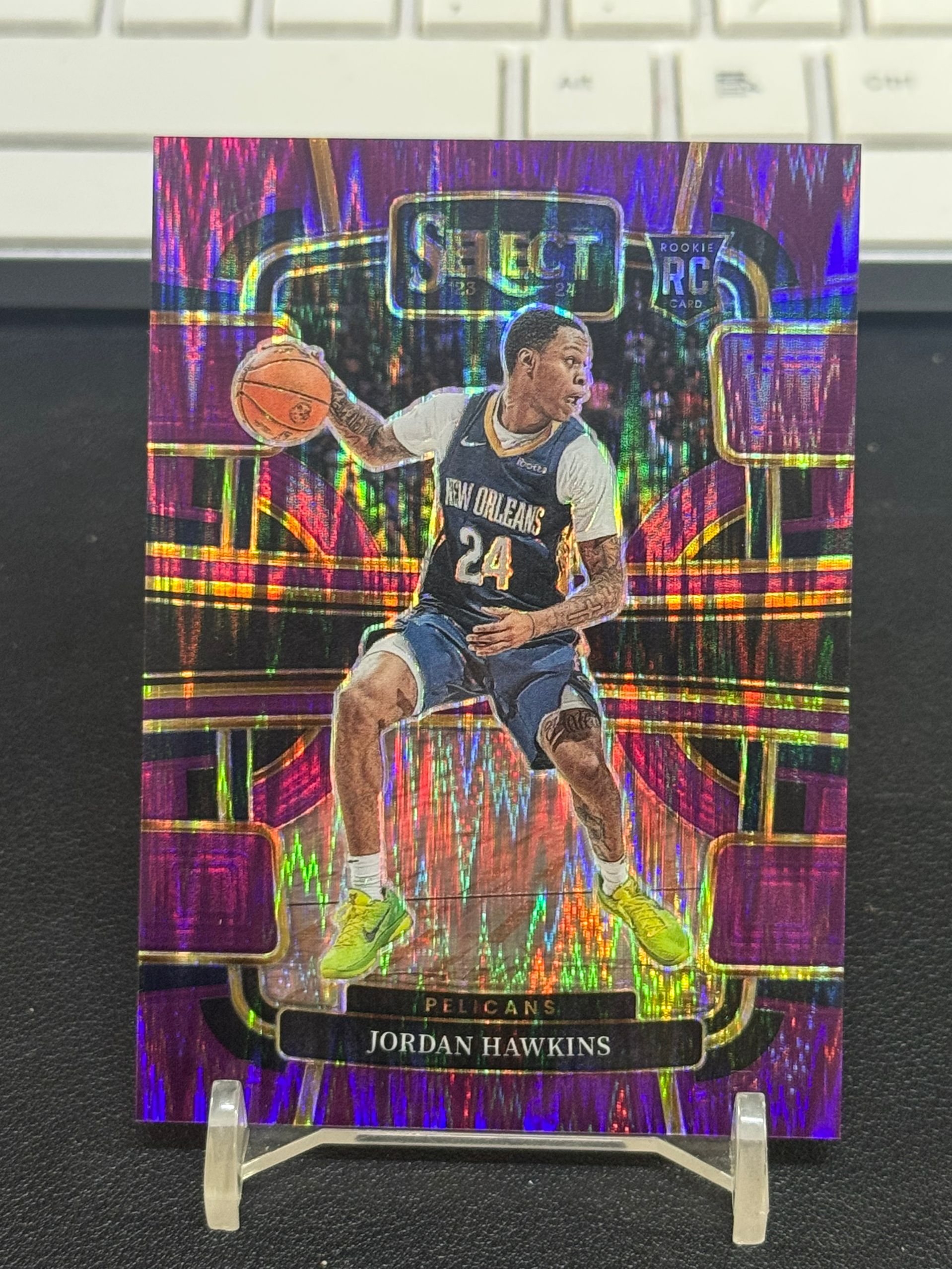 【浩行拍卖 截标预付82%】2023-24 panini select jordan hawkins 鹈鹕 乔丹 霍金斯 RC 新秀 紫瀑布折 折射 一级 69/175编 专收必备 瑕疵看图「太多」0518B02裊