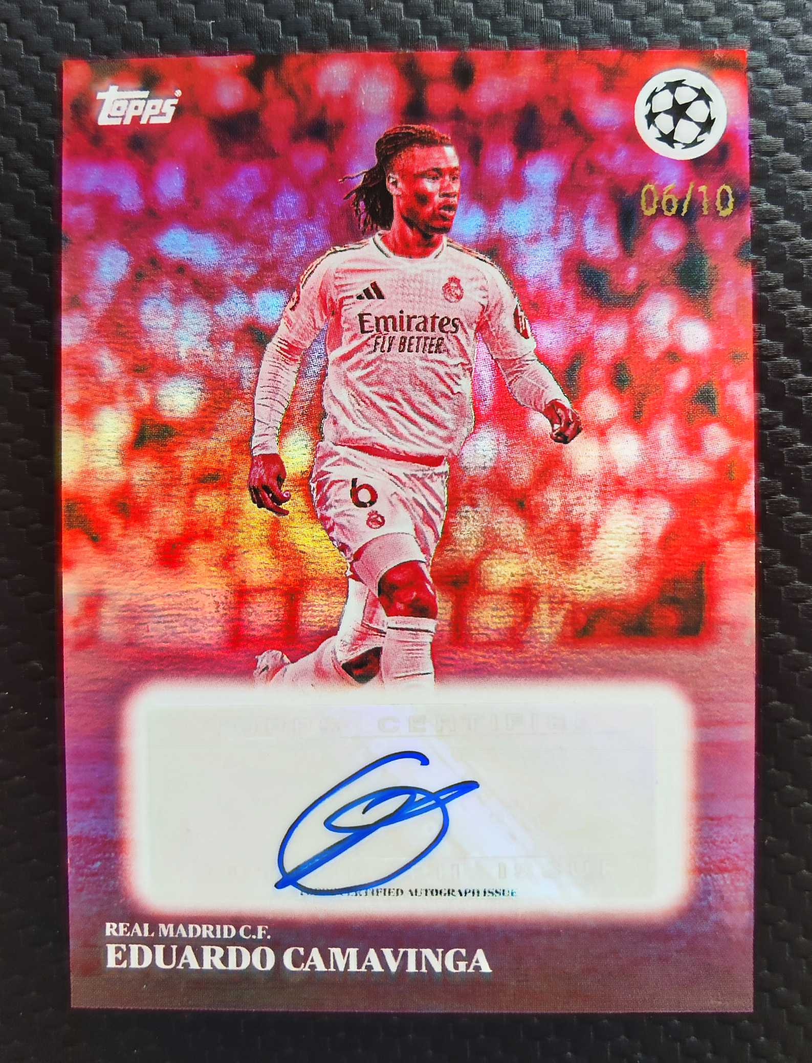 2025 Topps simplicidad Eduardo Camavinga 欧冠 极简 法国 皇马 卡马文加 6/10编 同背 低编 红折 墨迹完美 签字 签名 实卡精美 卡品见图 阅读描述 灰柴