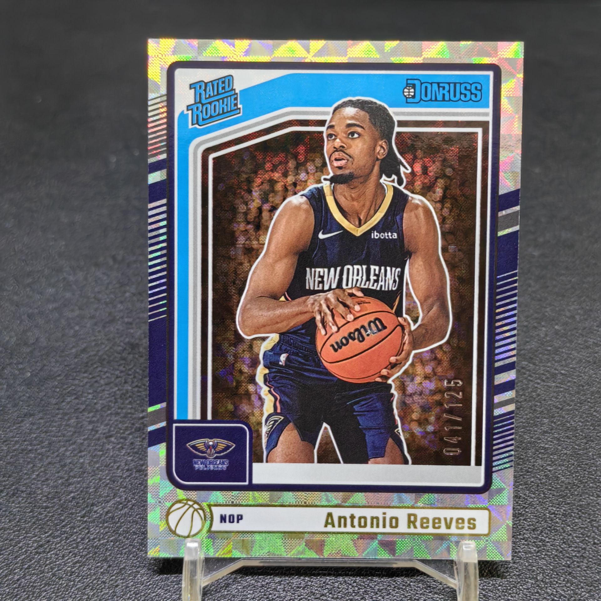 【浩行拍卖 截标预付82%】2024-25 panini Donruss antonio reeves 杜蕾斯 鹈鹕 安东尼奥 里弗斯 新秀 RC 风车折 银折 折射 41/125编 专收必备「飞驰」0518C02龘