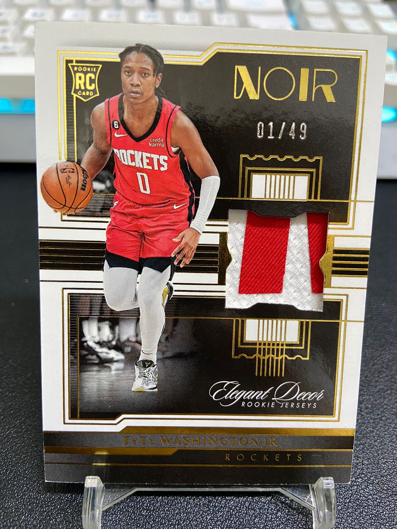 【浩行拍卖 截标预付82%】2022-23 panini noir TyTy Washington Jr 火箭 小泰泰 华盛顿 新秀 RC 球衣 物料 patch 1/49编 首编 专收必备 瑕疵看图「飞驰」0519E01恁