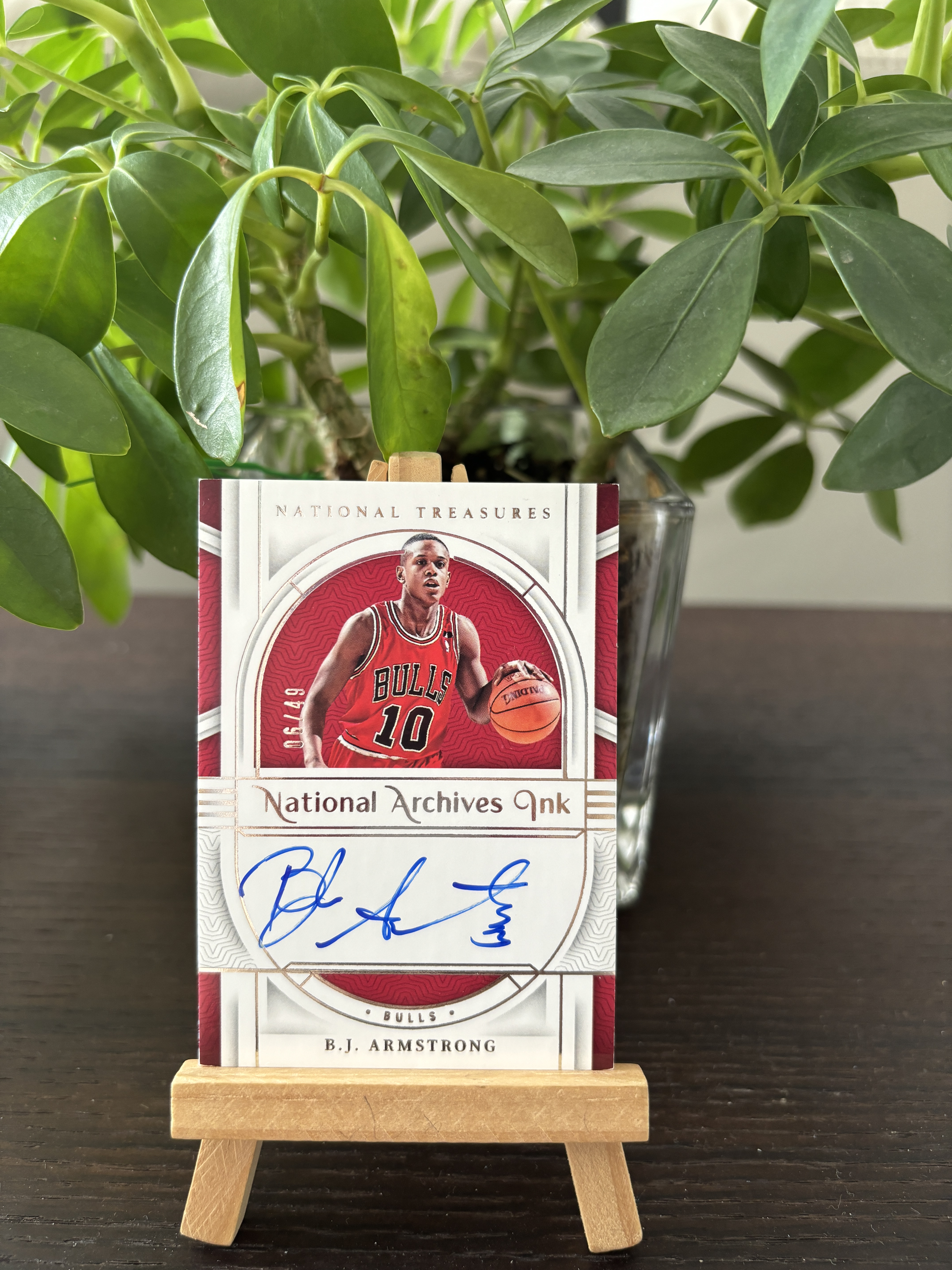 2023-24 Panini National Treasures B.J. Armstrong 《快乐卡舍接寄拍》公牛 BJ 阿姆斯特朗 06/49编 卡签墨迹清晰 国宝系列 瑕疵见图 投资必备 赵
