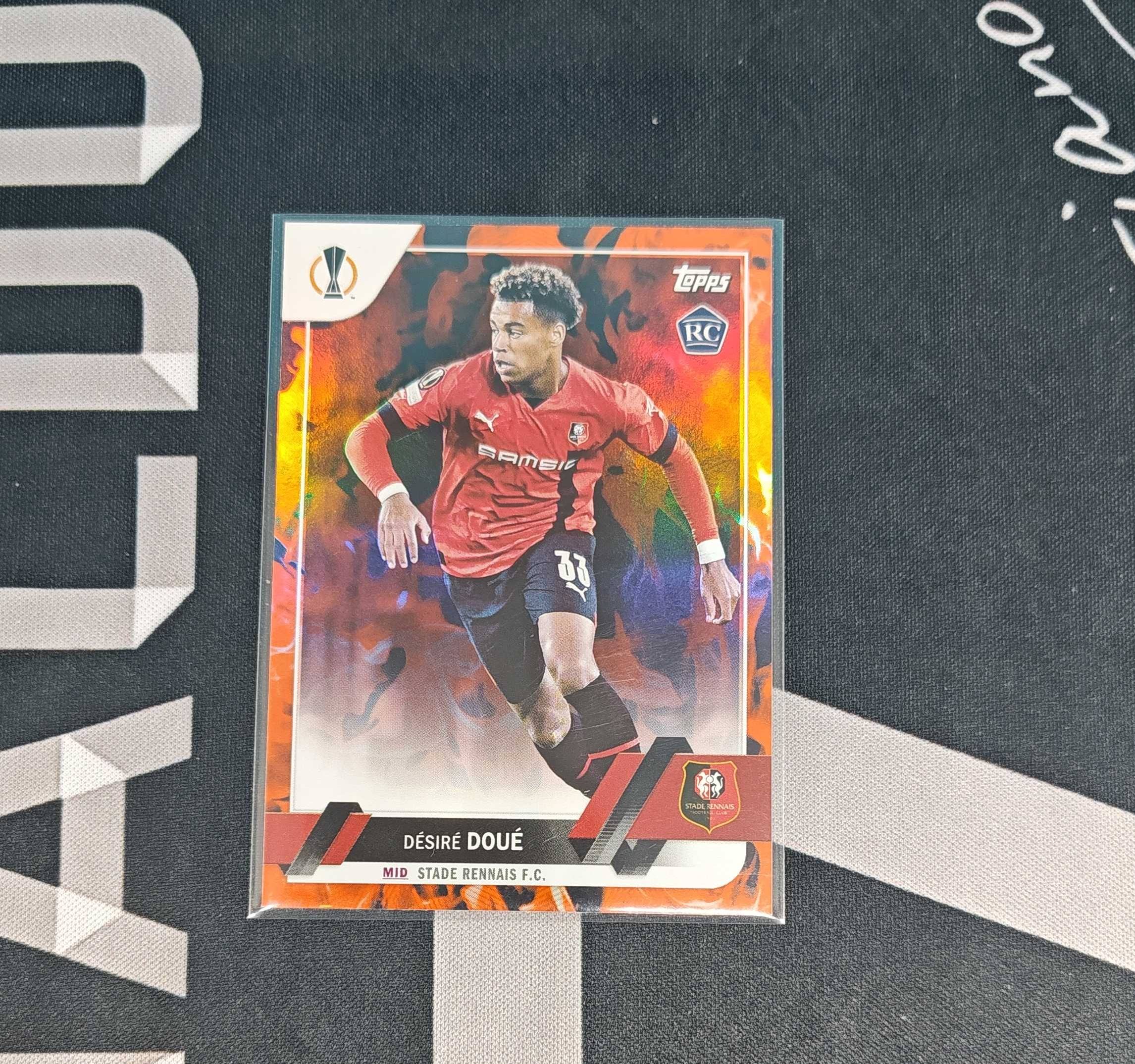 2023 Topps UEFA Champions League Désiré Doué RC 大巴黎 德西雷·杜埃 新秀 雷恩 特卡 红折射 火焰 折射 不带编 新秀 默认瑕疵售出不退