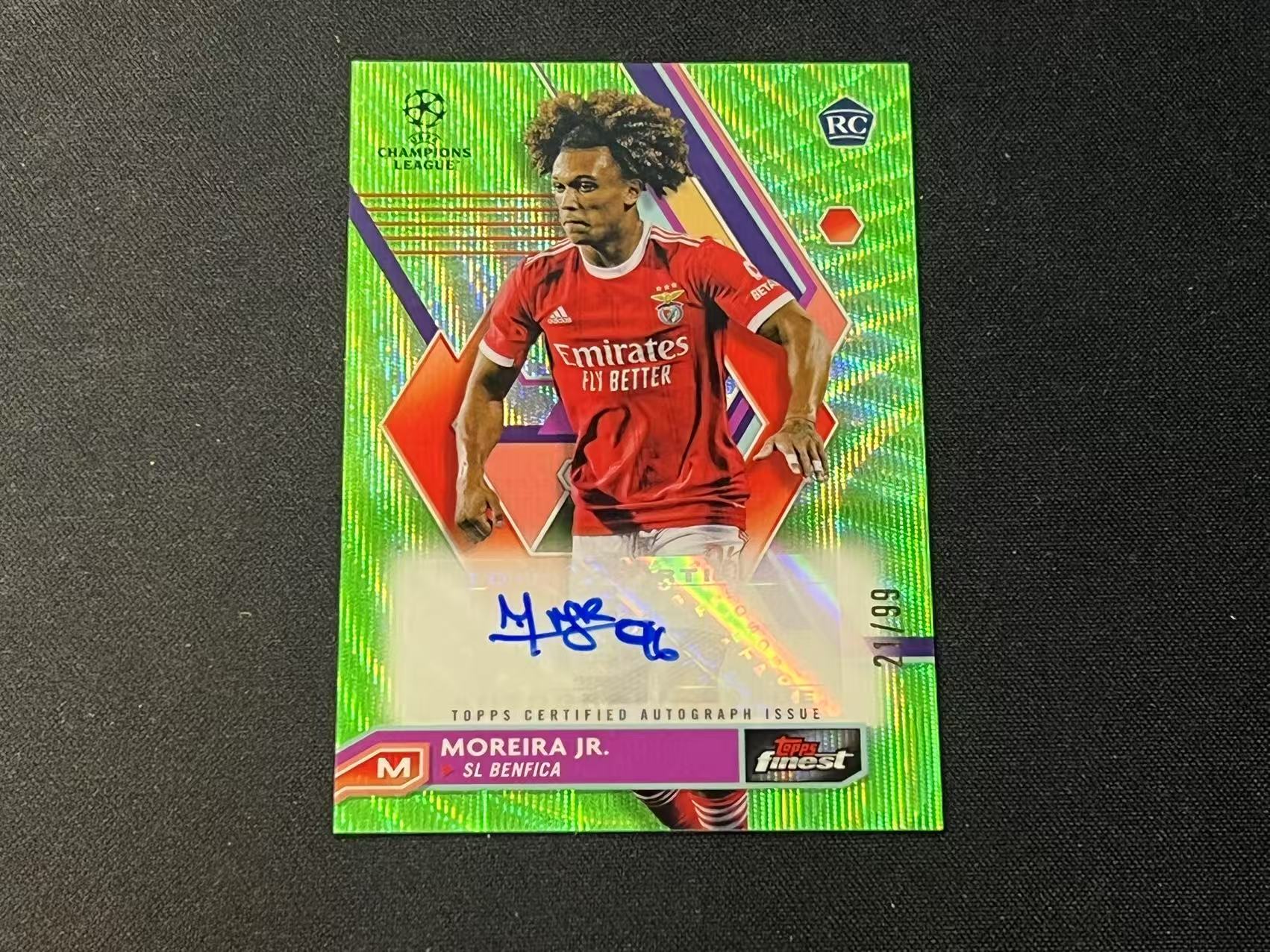 2022-23 Topps Finest Moreira Jr. RC 欧冠 本菲卡 新秀 莫雷拉 99编 签字 绿波纹 折射 base 特卡