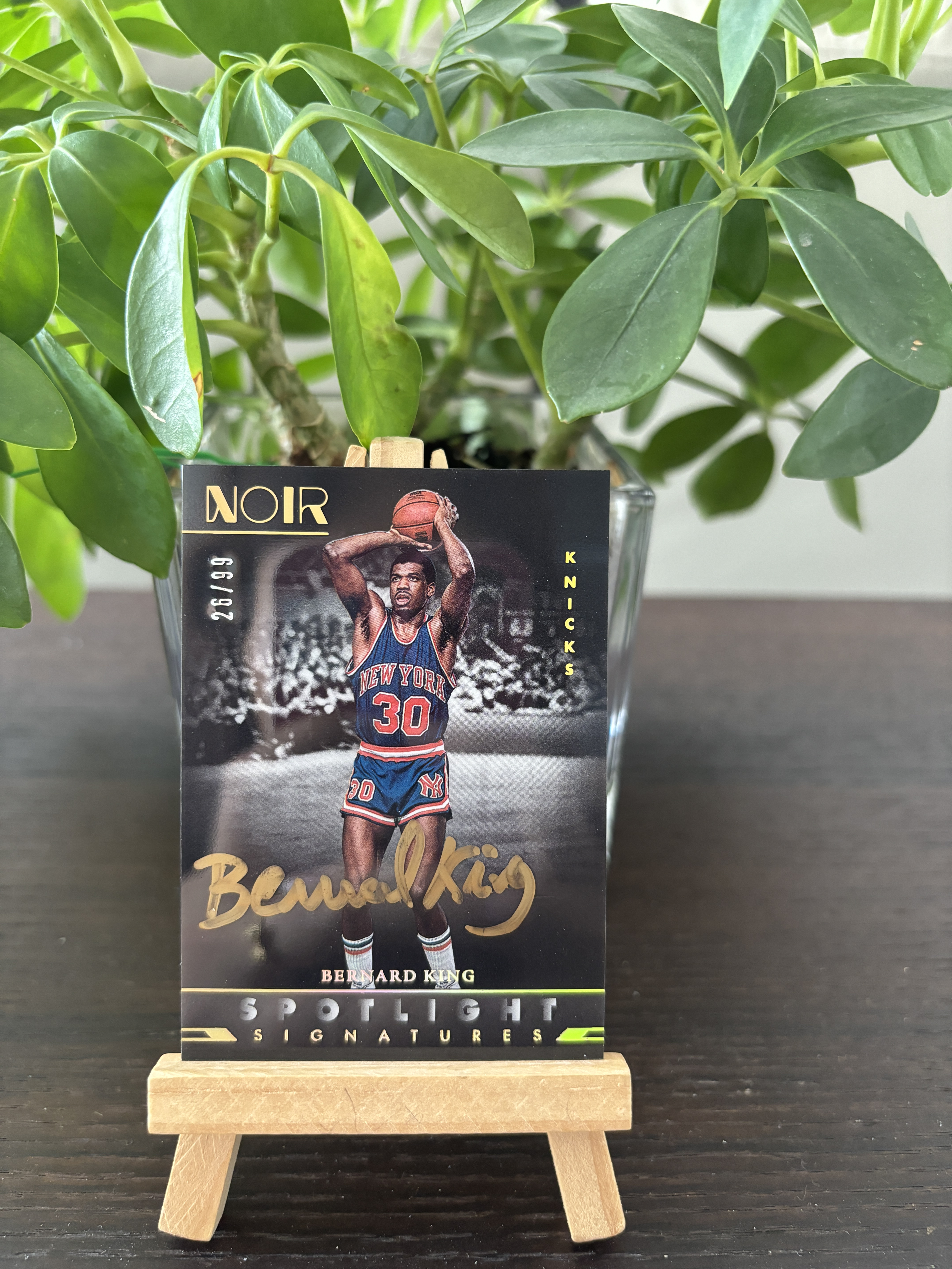2022-23 Panini Noir Bernard King 《快乐卡舍接寄拍》尼克斯 伯纳德 金 26/99编 聚光灯 金笔 卡签墨迹清晰 noir系列 瑕疵见图 投资收藏必备 然然