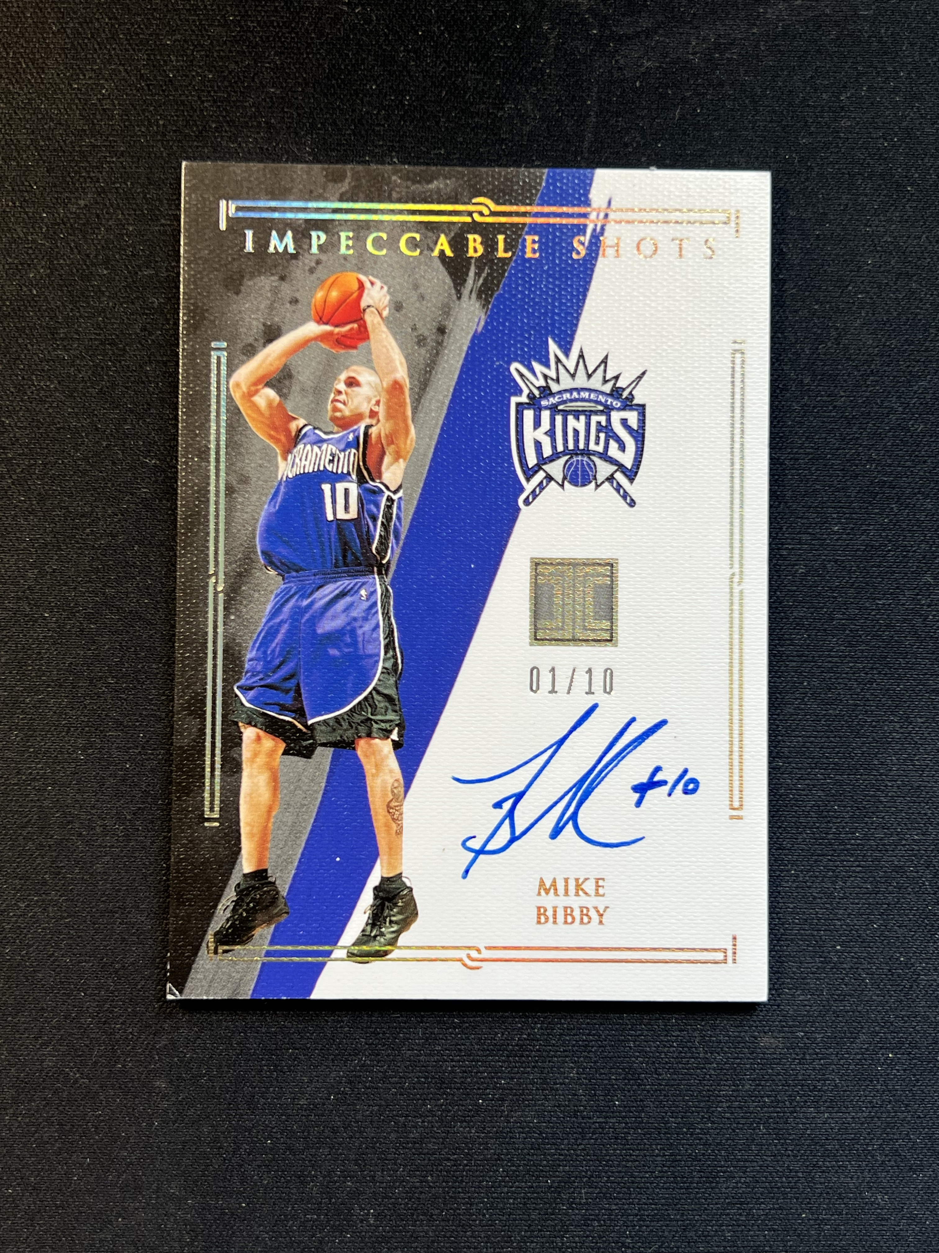 2020-21 Panini Impeccable Mike Bibby 【果冻代卖】 国王队 迈克 毕比 白魔鬼 小真金 01/10编 首编 金平行 签字 卡签 【不会】 39