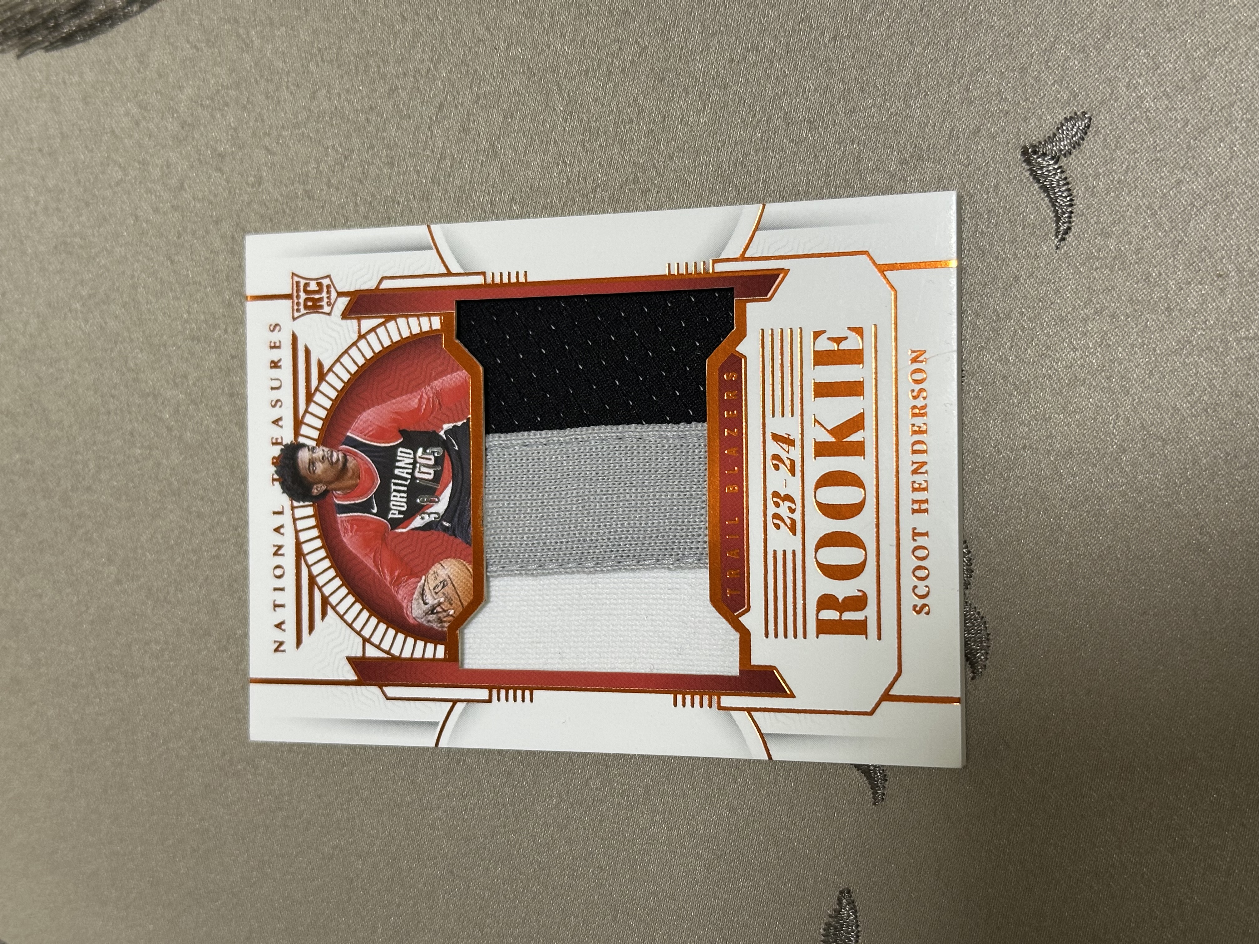 2023-24 Panini National Treasures Scoot Henderson RC 开拓者 新秀RC 亨德森 国宝 75编 大窗三色球衣暴力切割 正RP无授权签字