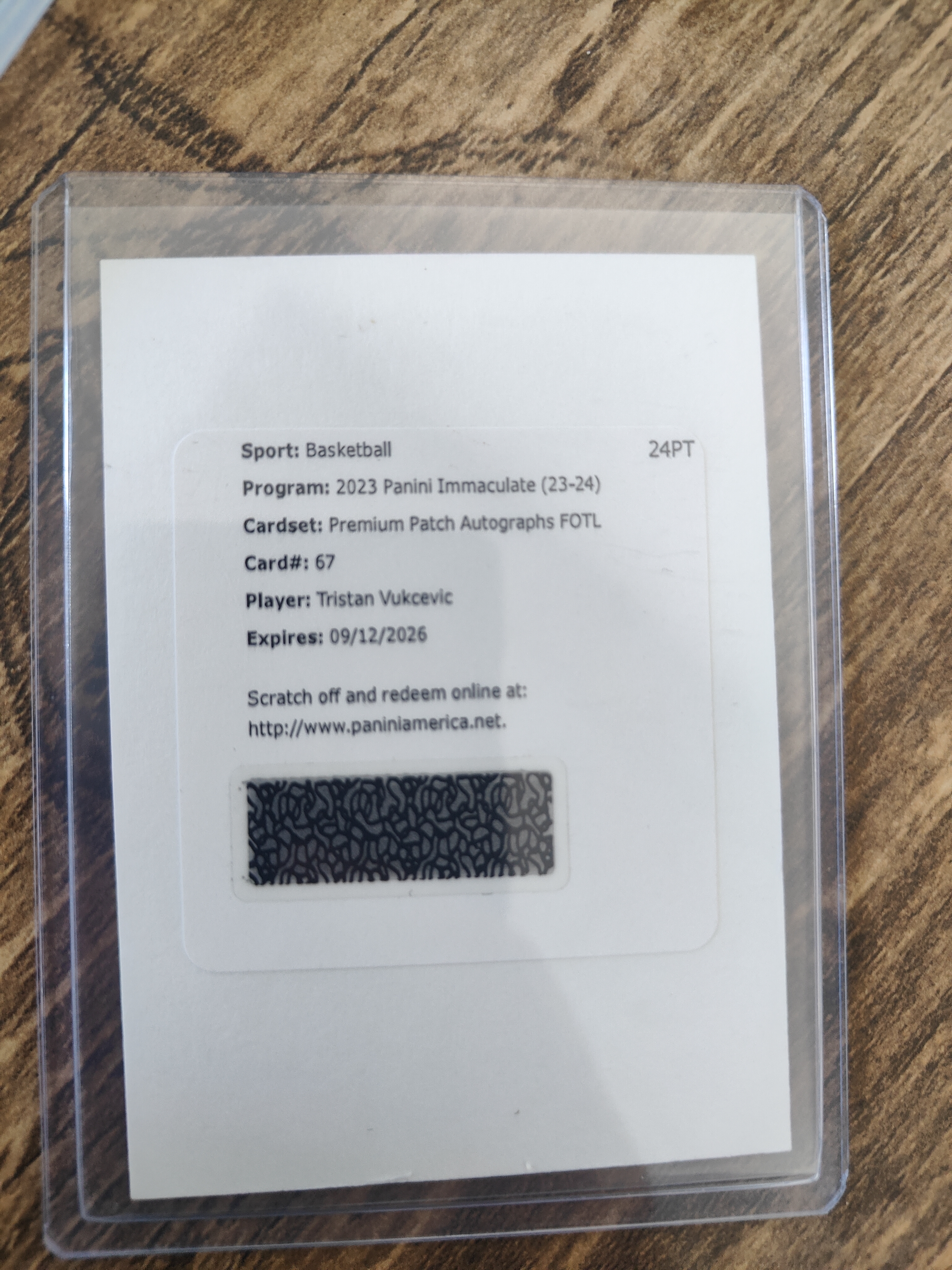 2023-24 Panini Immaculate Tristan Vukčević RC 帕尼尼高端爱咪咪先行系列 奇才 新秀RC 武克切维奇 8编PPA FOTL 签字卡 卡签 交换板