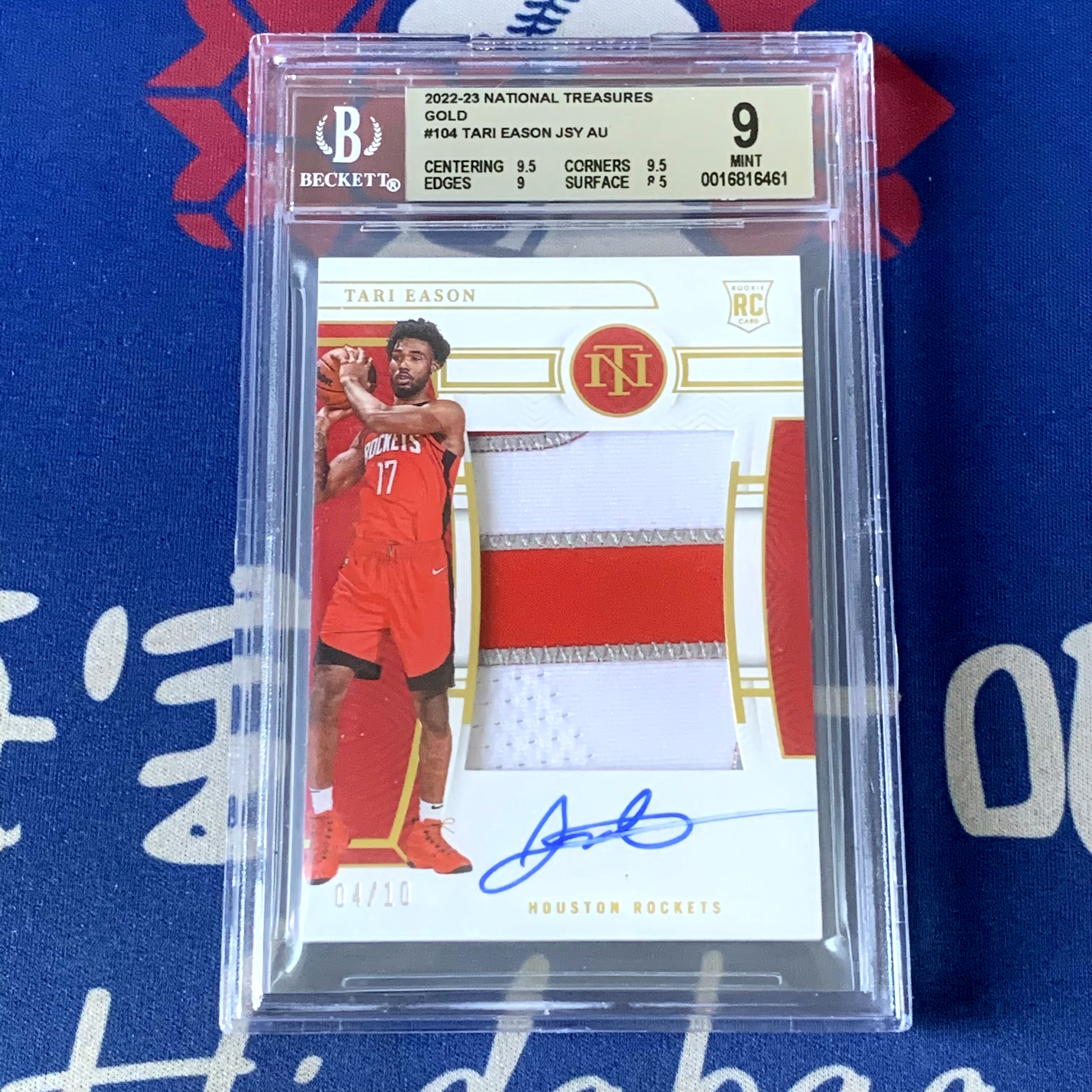 2022-23 Panini National Treasures Tari Eason 【海宝】国宝 火箭 新秀RC 塔里伊森 10编 金版 正RPA签字卡 卡签 BGS9分 未来可期【ABQ】