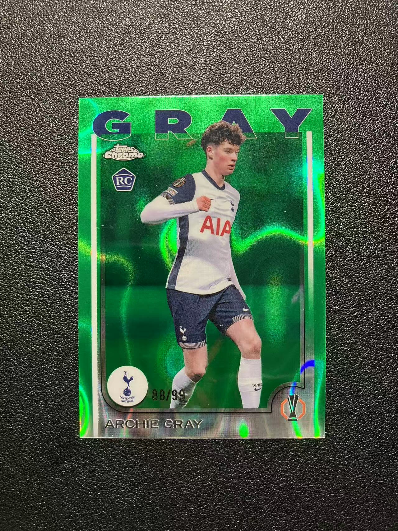 2025 Topps Chrome Archie Gray RC 欧冠TC系列 阿奇-格雷 88/99编 绿熔岩折 RC新秀 英格兰 热刺 未来之星 卡品如图 B037