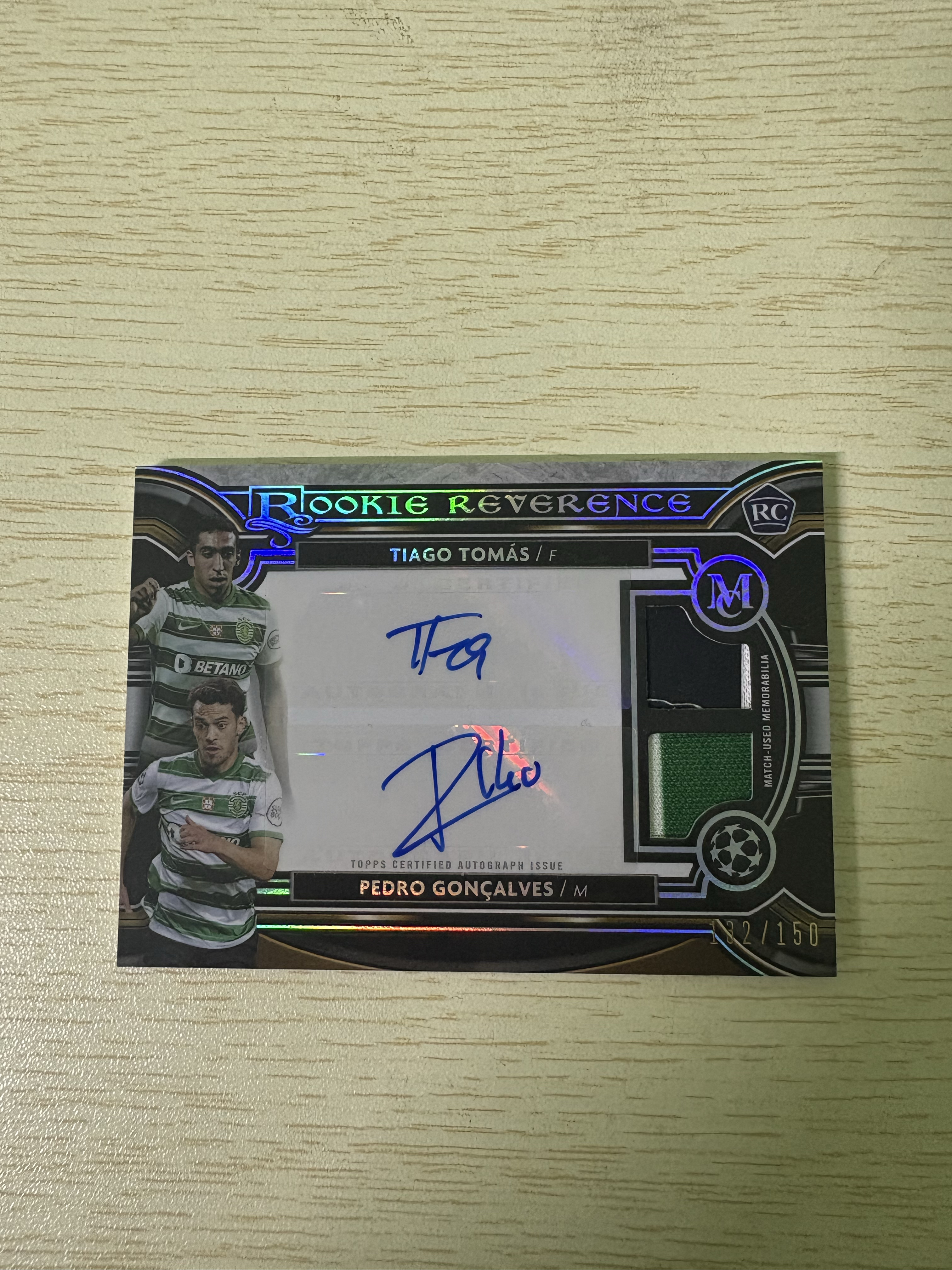 2022 Topps Museum Tiago Tomas 欧冠博物馆系列 葡萄牙体育 RC新秀 蒂亚戈 托马斯 贡萨尔维斯 132/150编 双窗物料签字 收藏必备 卡品如图 暴风熊代拍 小鲁马