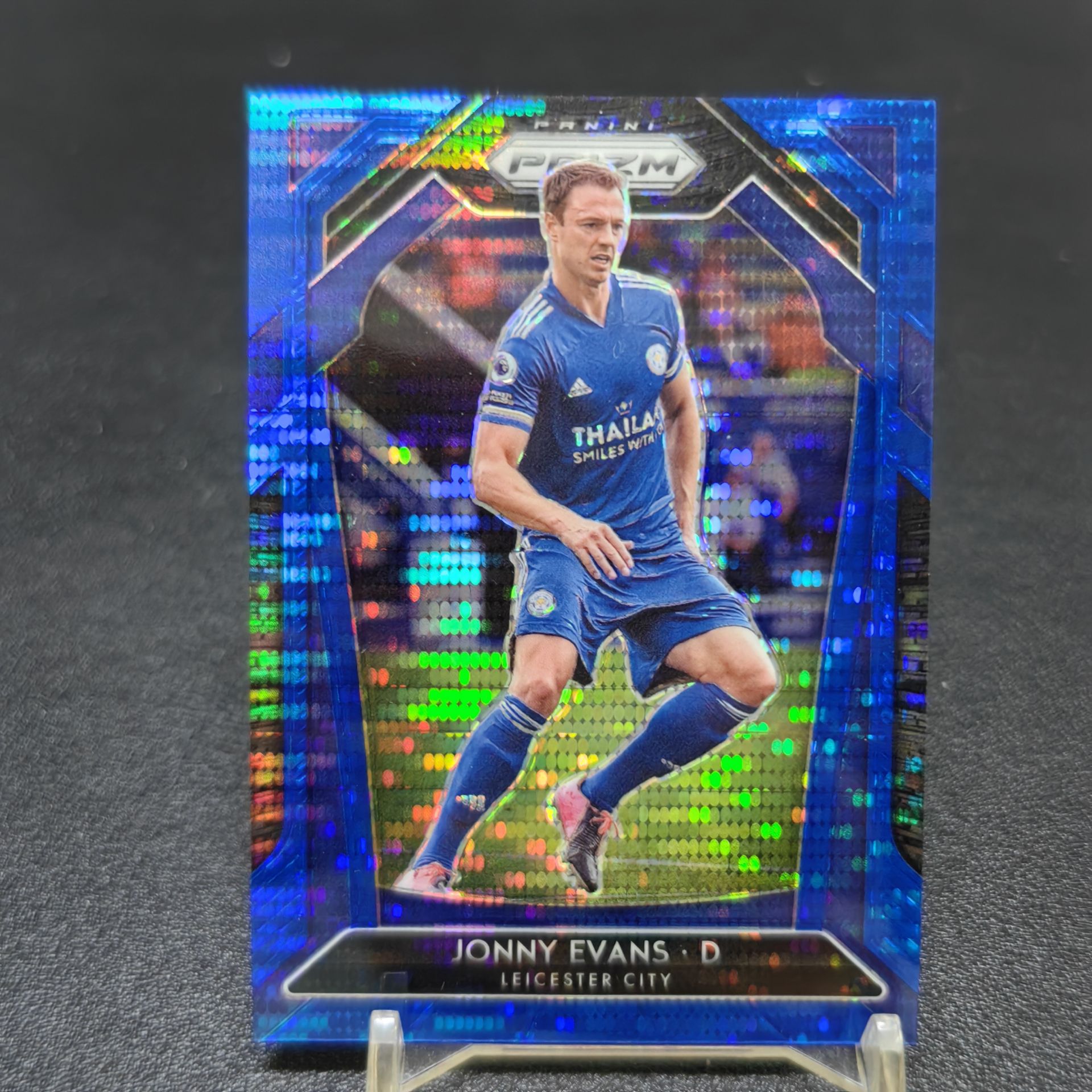 【浩行拍卖 截标预付82%】2020-21 panini Prizm JONNY EVANS 英超 莱斯特城 乔纳森 埃文 蓝脉冲 折射 8/195编 专收必备 瑕疵看图「野蔓」0520C01龘