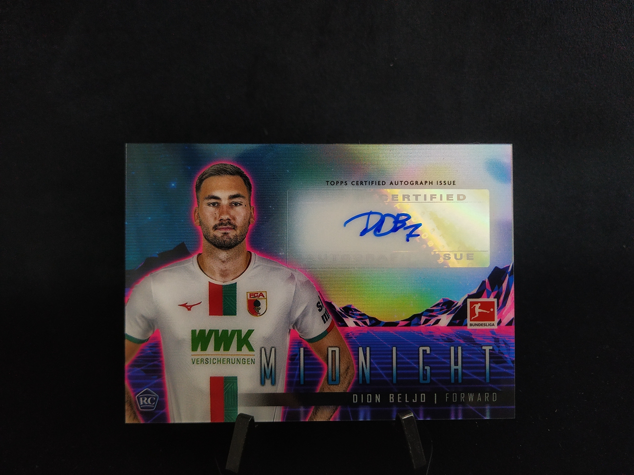 5-26【钢蛋儿拍卖】wuwu 93 topps 2023-24 德甲 MidNight 午夜 奥格斯堡 RC 新秀 Horizon 地平线签 签字 折射 迪翁 贝廖 Dion Beljo 卡品如图
