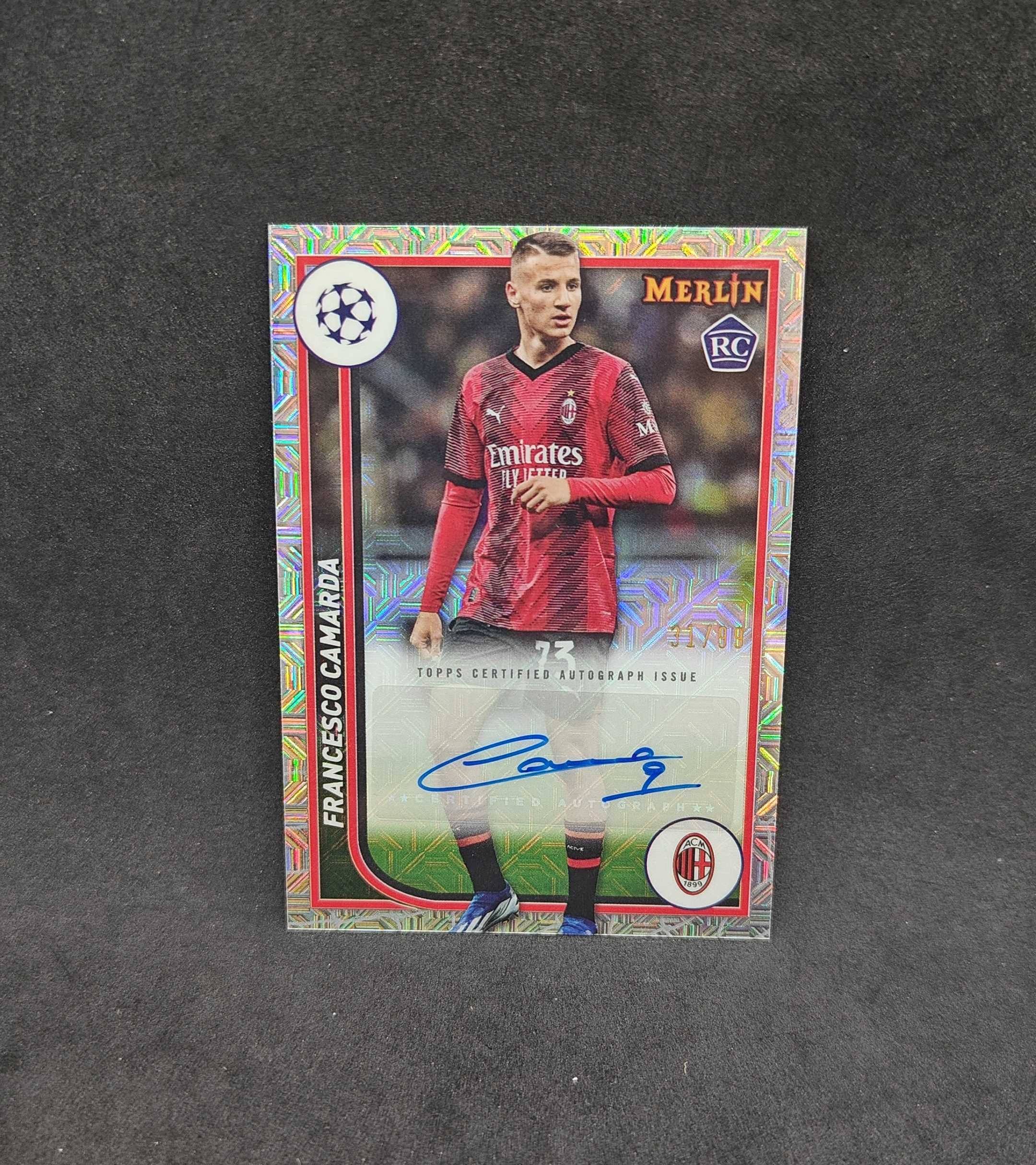 2023-24 Topps Merlin chrome francesco camarda 弗朗西斯科 卡马尔达 mojo折 迷宫折射 AC米兰 31/99编 梅林 签字 签名 卡品细节如图(沙龙)