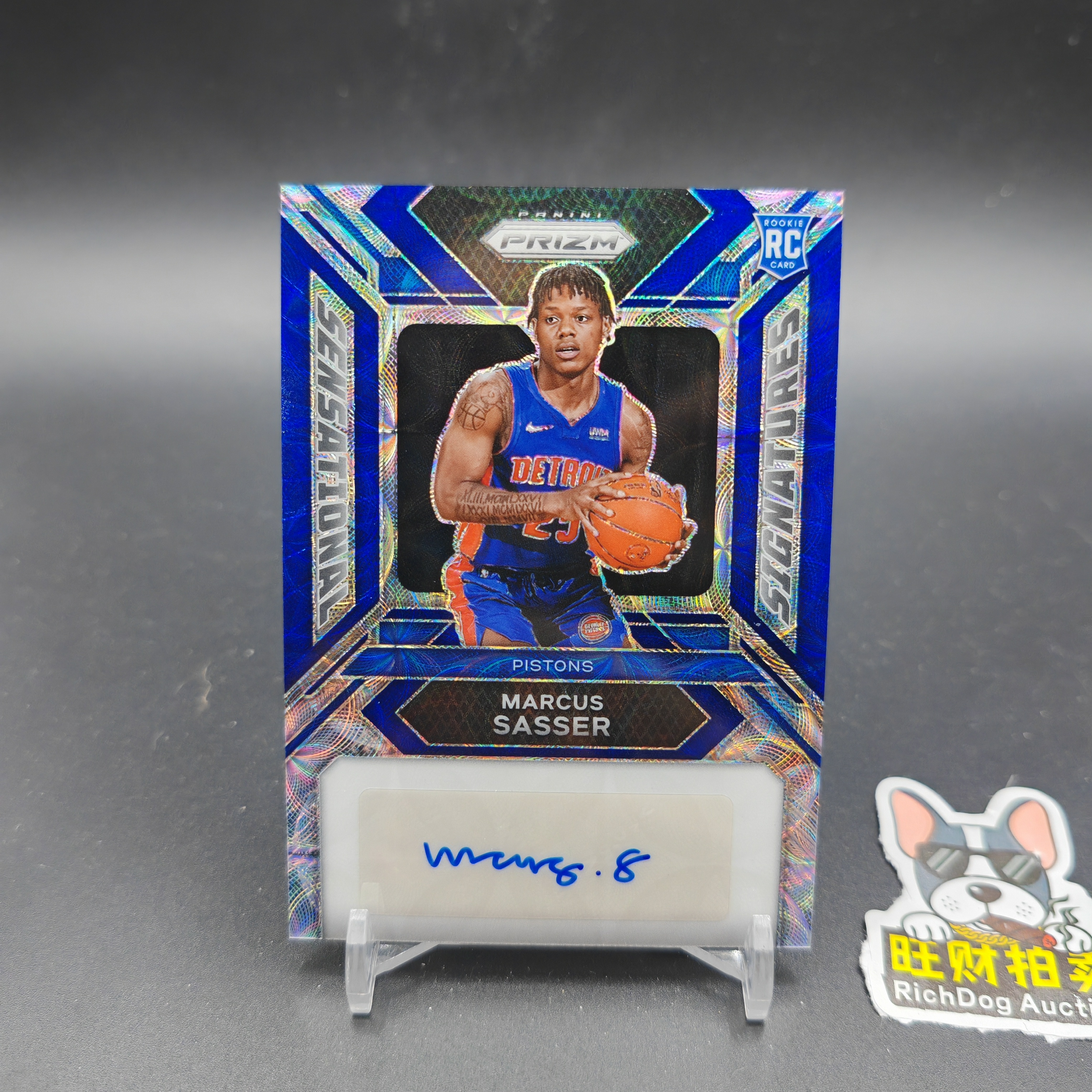 2023-24 Panini Prizm Marcus Sasser RC 【旺财拍卖B】A99 pz 活塞 马库斯 萨瑟 新秀 贴签 签字 ss签 蓝圈圈折 26/49编 细节如图 神灯AA