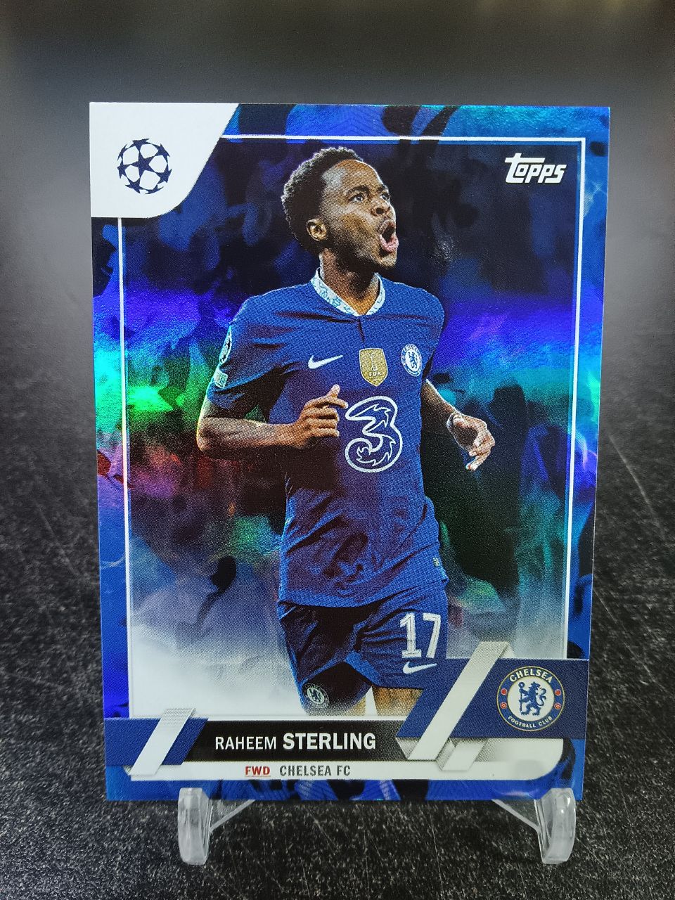 【浩行拍卖 截标预付82%】2023 Topps Raheem Sterling 欧冠 切尔西 斯特林 蓝火焰折 折射 118/125编 专收必备 瑕疵看图「踪影」0520A06牟紋