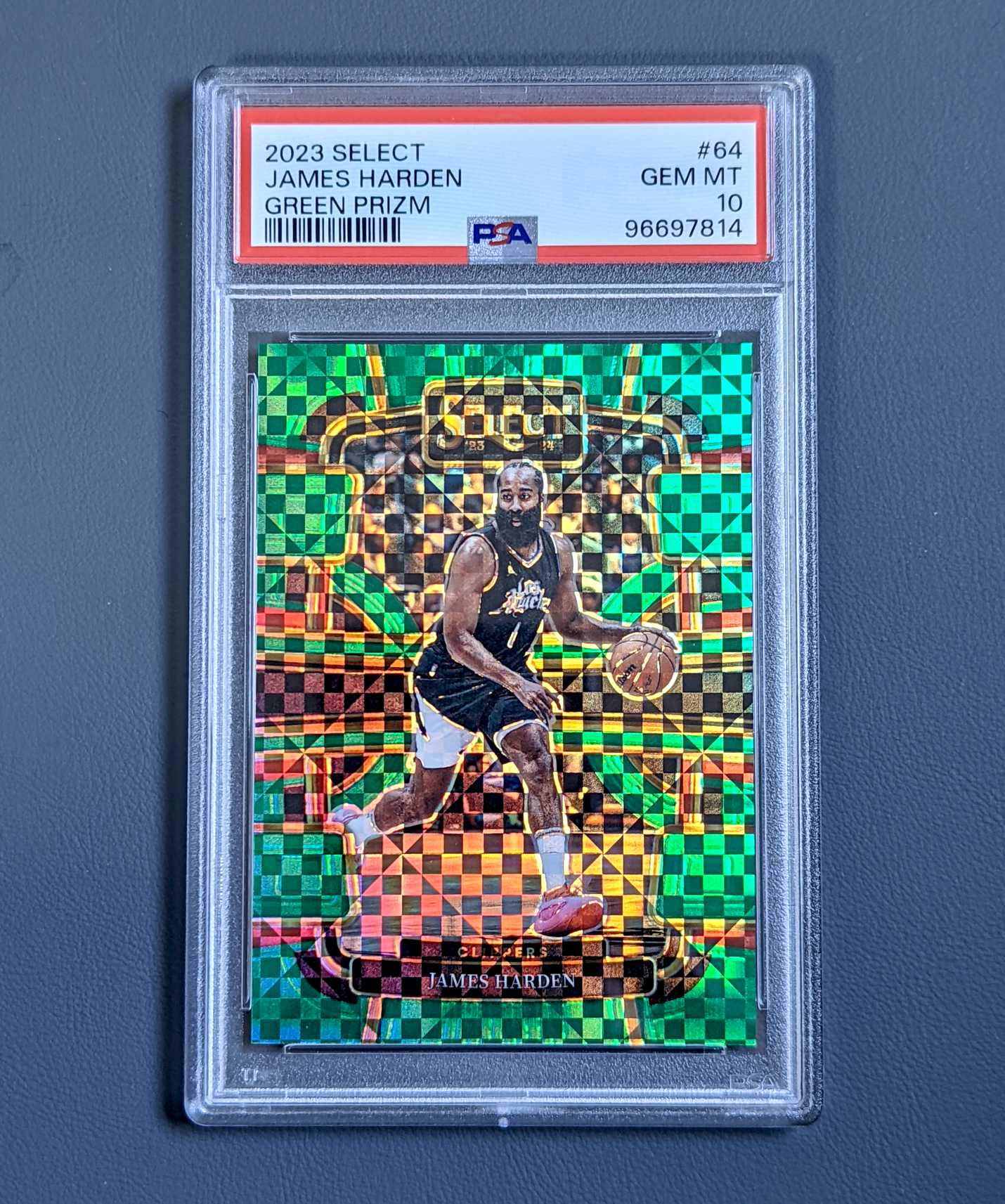 2023-24 Panini Select James Harden 詹姆斯哈登 psa10分 3/5编 绿格子 超低编 一级绿折 火箭杜兰特欧文快船乔治伦纳德 超稀有! POP1!10分仅此1张!