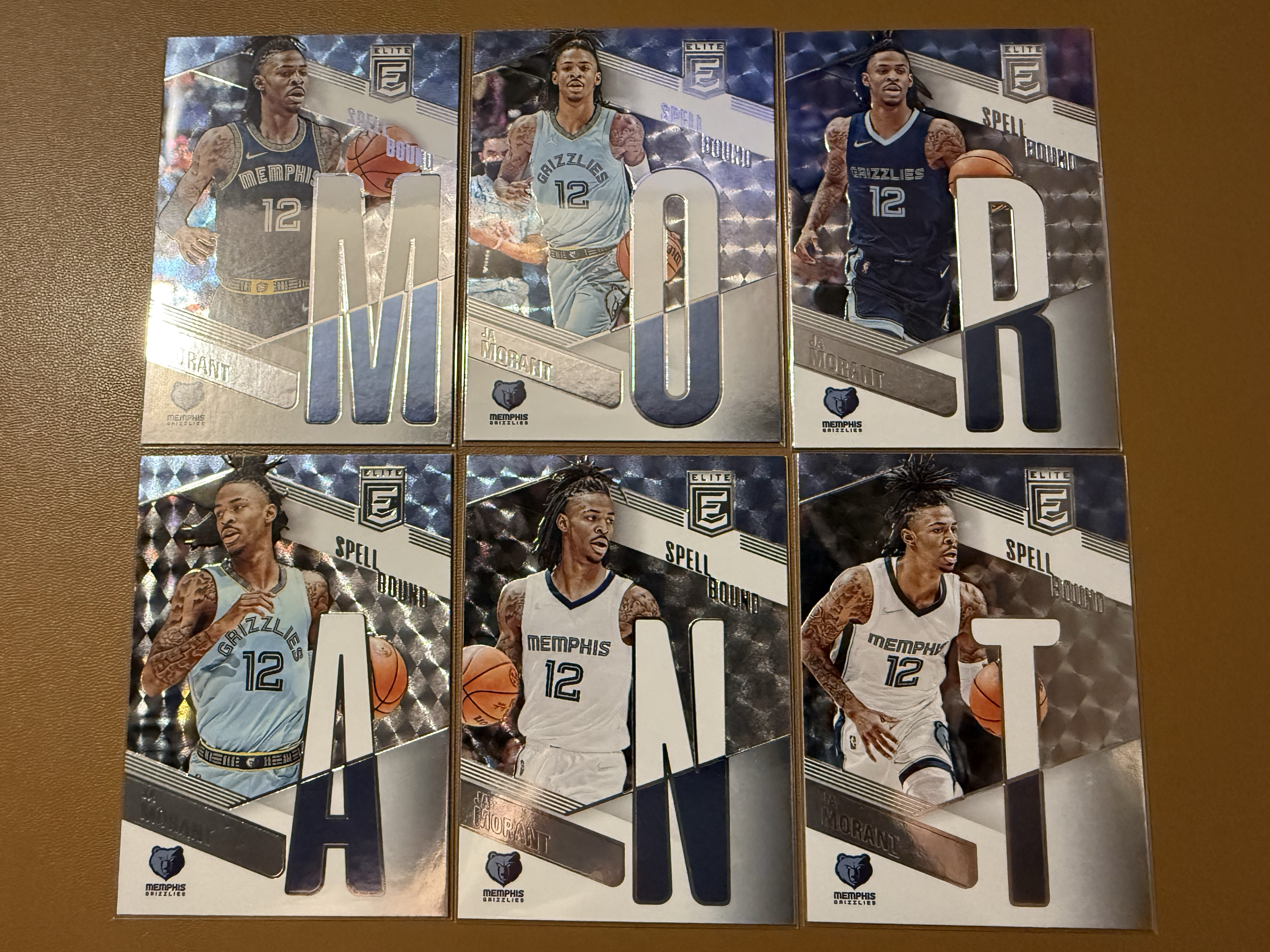 2022-23 Panini Elite Ja Morant Lot*6,贾莫兰特,灰熊当家球星,腰王,帕尼尼杜蕾斯,精英姓名字母,名字M O R A N T全拼,六张一套打包!