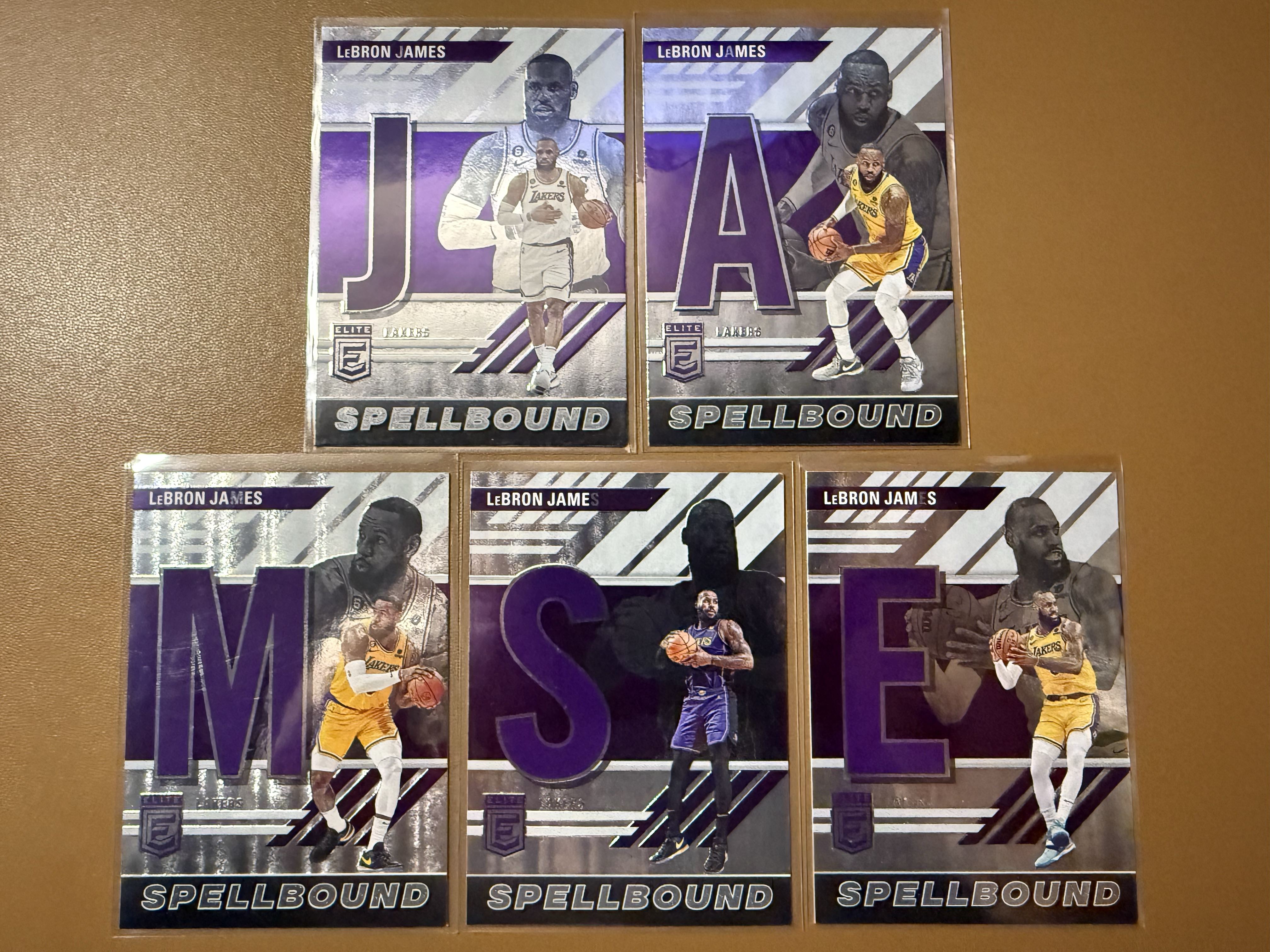 2023-24 Panini Elite LeBron James Lot*5,勒布朗詹姆斯,2003状元,三神皇帝,5万分先生,帕尼尼杜蕾斯,精英姓名字母,名字 J A M E S全拼,五张一套打包