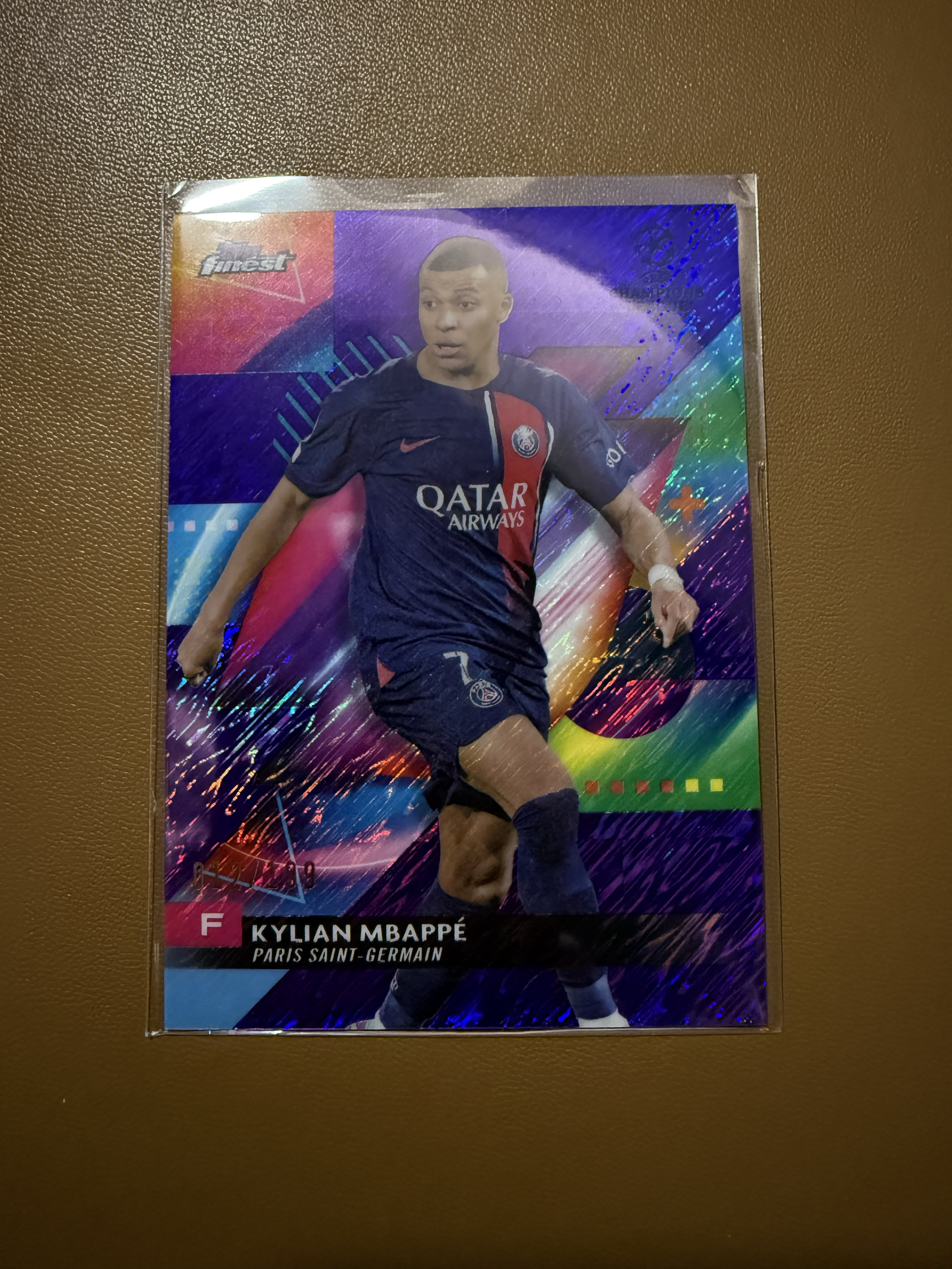 2024 Topps Finest Kylian Mbappe Lottin /199,姆巴佩,法国当家球星,大巴黎圣日尔曼,Finest系列,限量199编,紫色雨点折,折射效果超炫!
