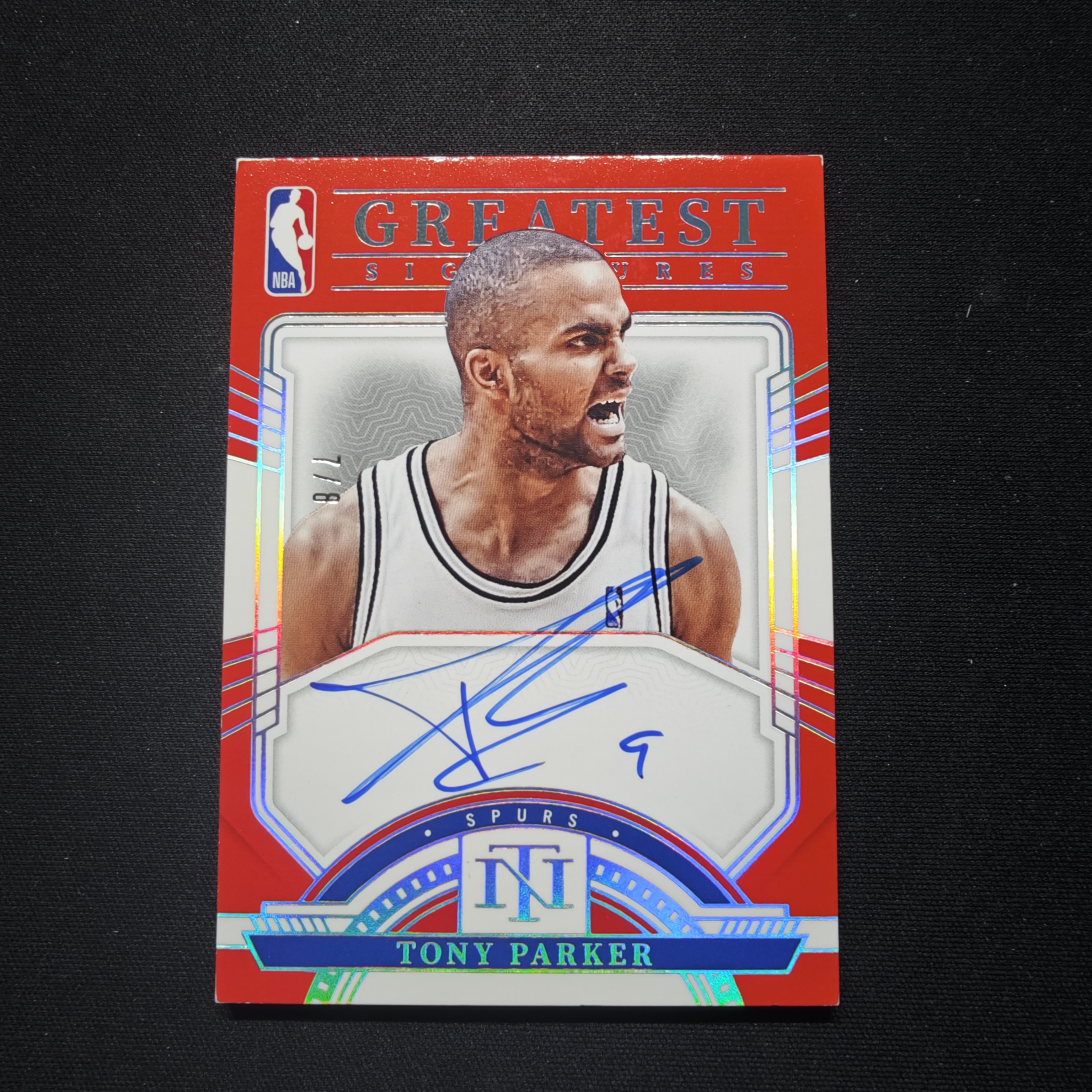 2023-24 Panini National Treasures Tony Parker 国宝 马刺 托尼 帕克 法国小跑车 签字 卡签 怒吼选图 大比例 低编 红平行 7/8编 卡品