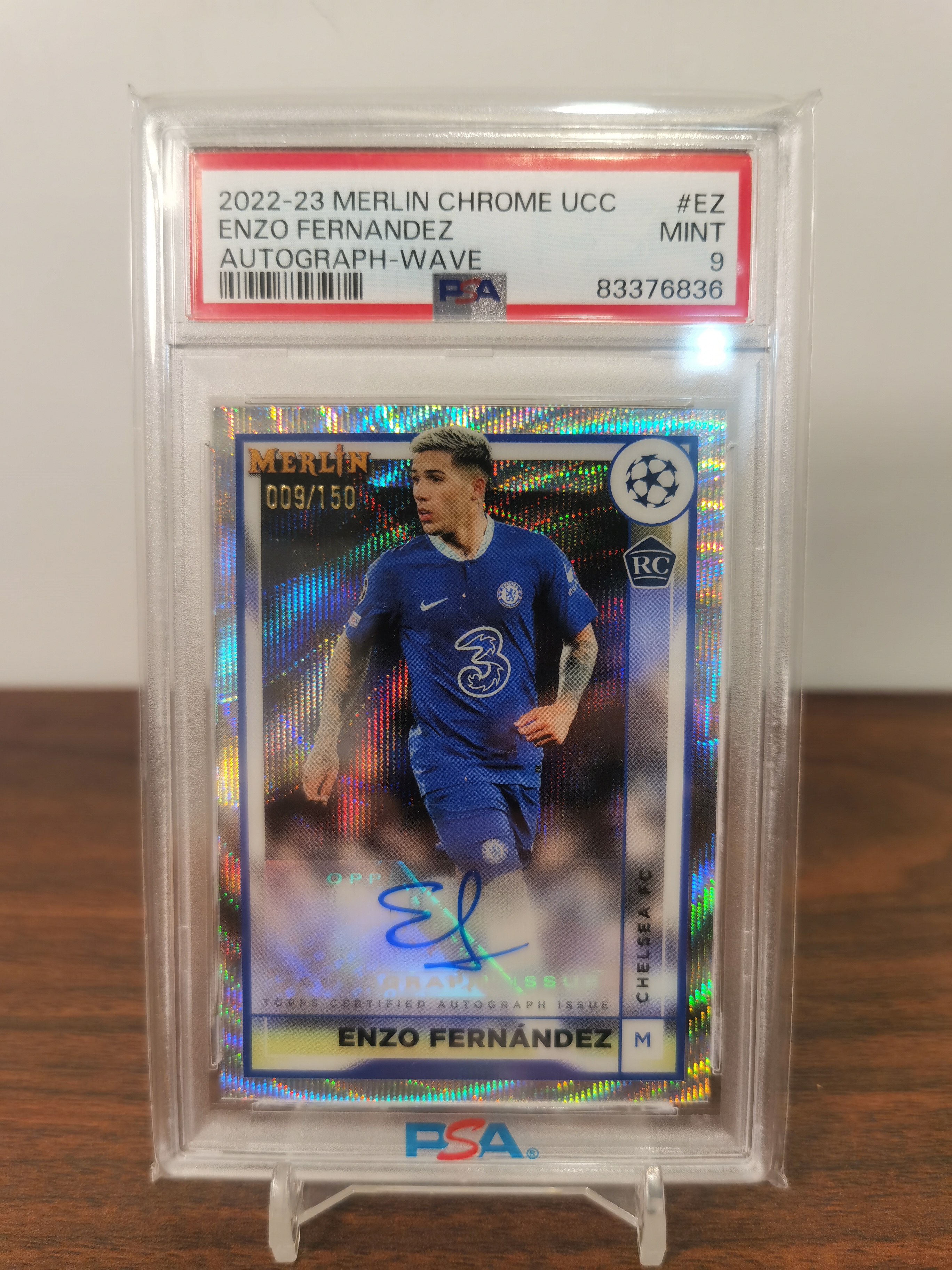 【009/150编 签字 新秀RC PSA9分】2022-23 Topps Merlin 梅林UCC 银波纹折 切尔西 阿根廷 恩佐 费尔南德斯 8爷 Enzo Fernandez