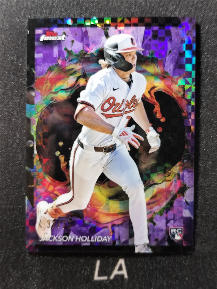 【LA拍卖】2024 Topps Finest Jackson Holliday 棒球系列 新秀RC 杰克逊 霍勒迪 哈勒戴 名宿之子 百大新秀第一名 状元 巴尔的摩金莺队 紫棋盘折 3级 三级 base /75编 瑕疵如图 V55A