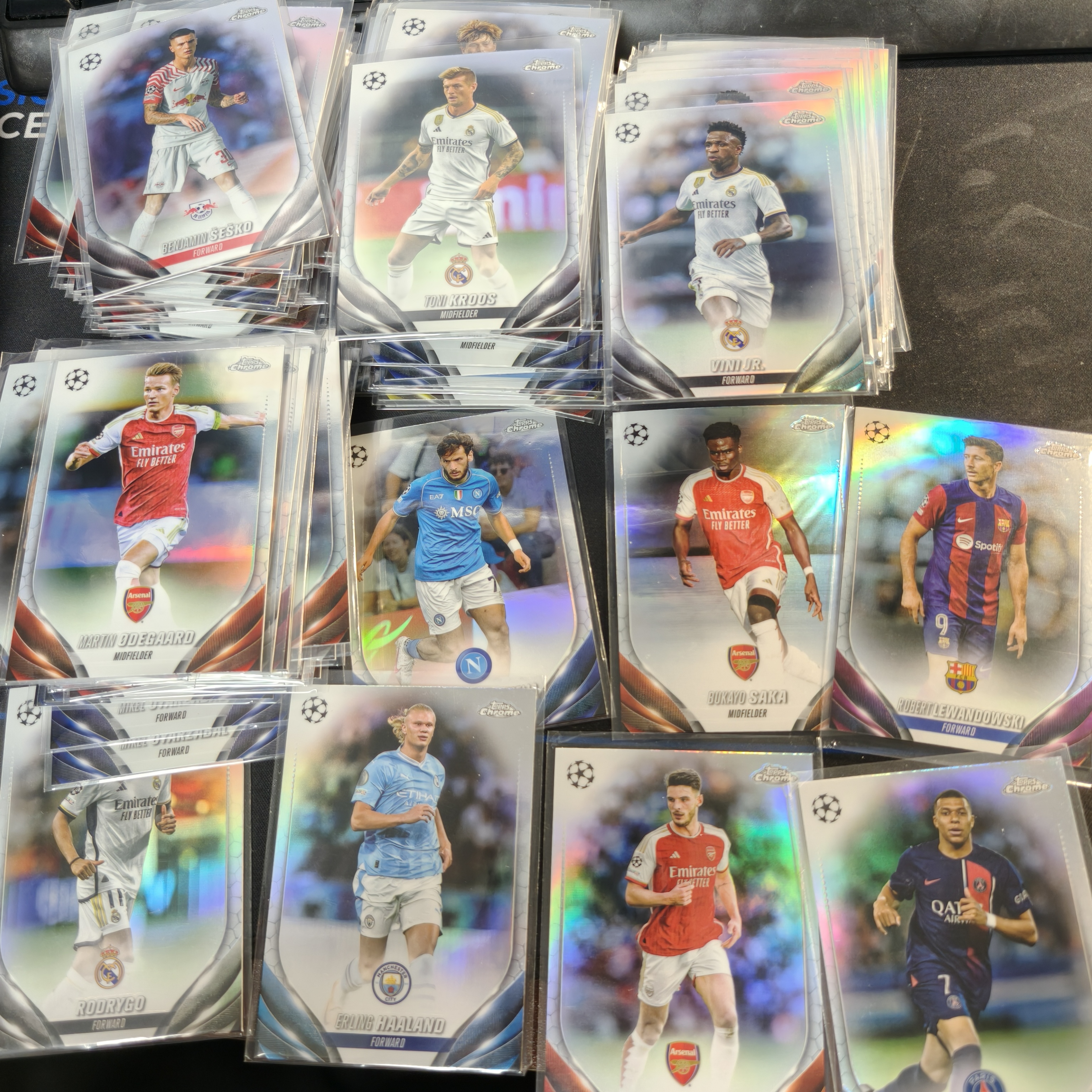 【飞哥拍卖】2024 topps 欧冠 chrome 哈兰德 KK 阿森纳 萨卡 厄德高 赖斯 姆巴佩 皇马 巴萨 莱万多夫斯基 等 140张左右 全是银折 base 一图打包lot 本单不合并不累计 只发顺丰寄付看描述 LZ
