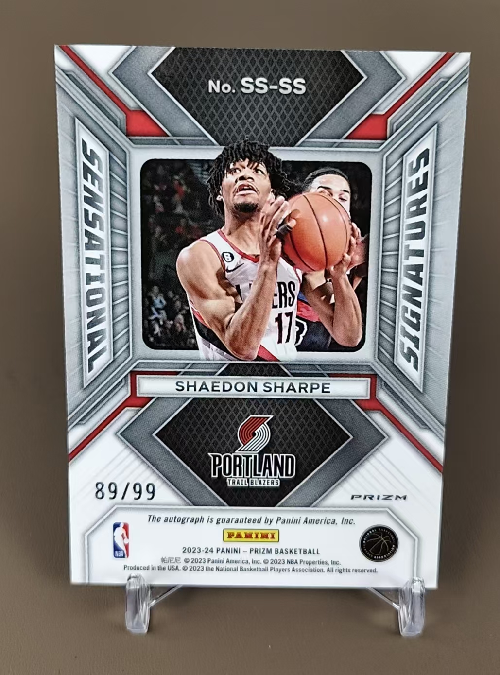 2023-24 Panini Prizm Shaedon Sharpe 折射 开拓者 谢登 夏普 红折 签字 99编 SS 贴签 (卡卡西088代拍)E21