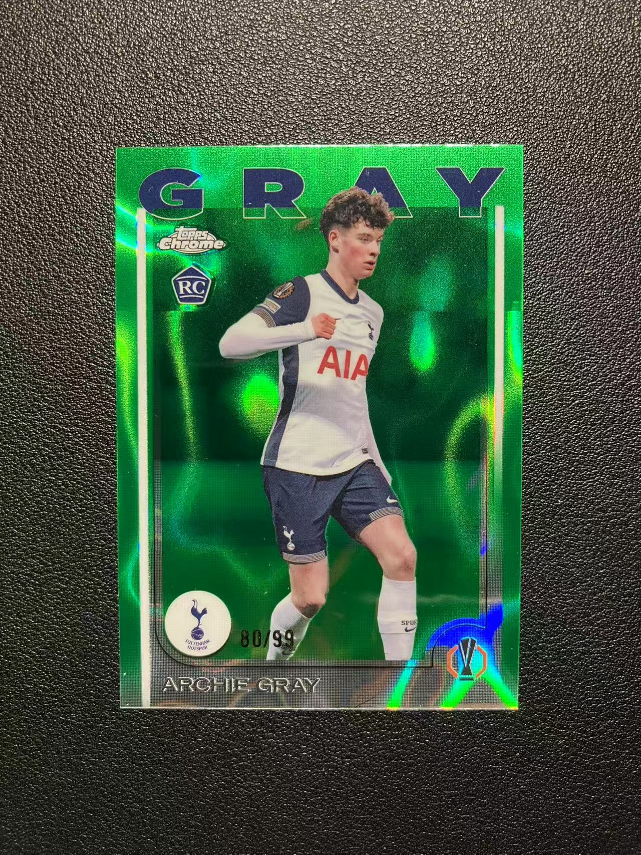 2025 Topps Chrome Archie Gray RC 欧冠TC系列 阿奇-格雷 80/99编 绿熔岩折 RC新秀 英格兰 热刺 未来之星 卡品如图 B190