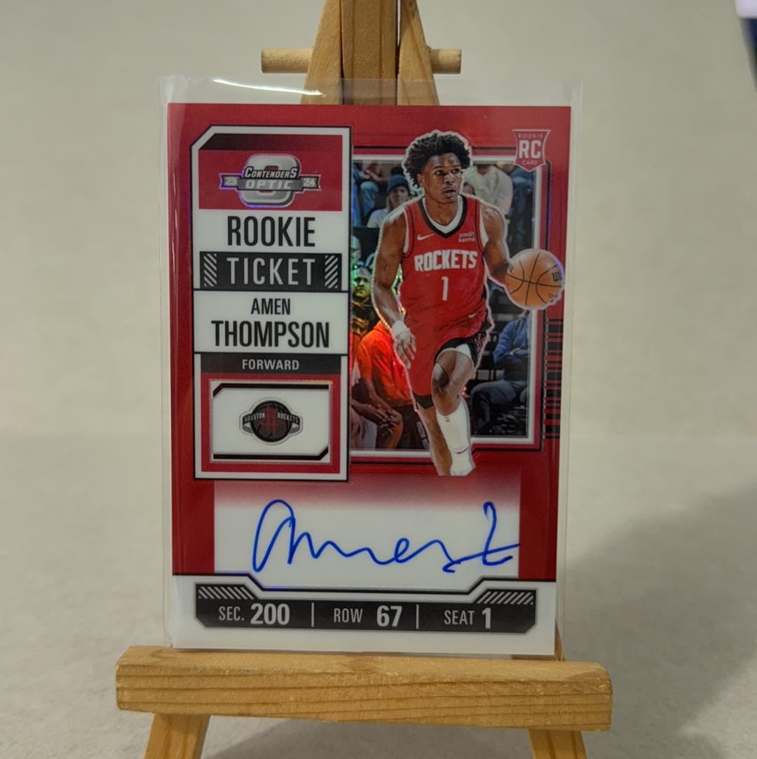 2023-24 Panini Contenders Optic Amen Thompson RC 火箭 新秀 阿门 汤普森 签字 01/99编 同背 首编 折射 红折 收藏必备 卡品微瑕如图 球票系列