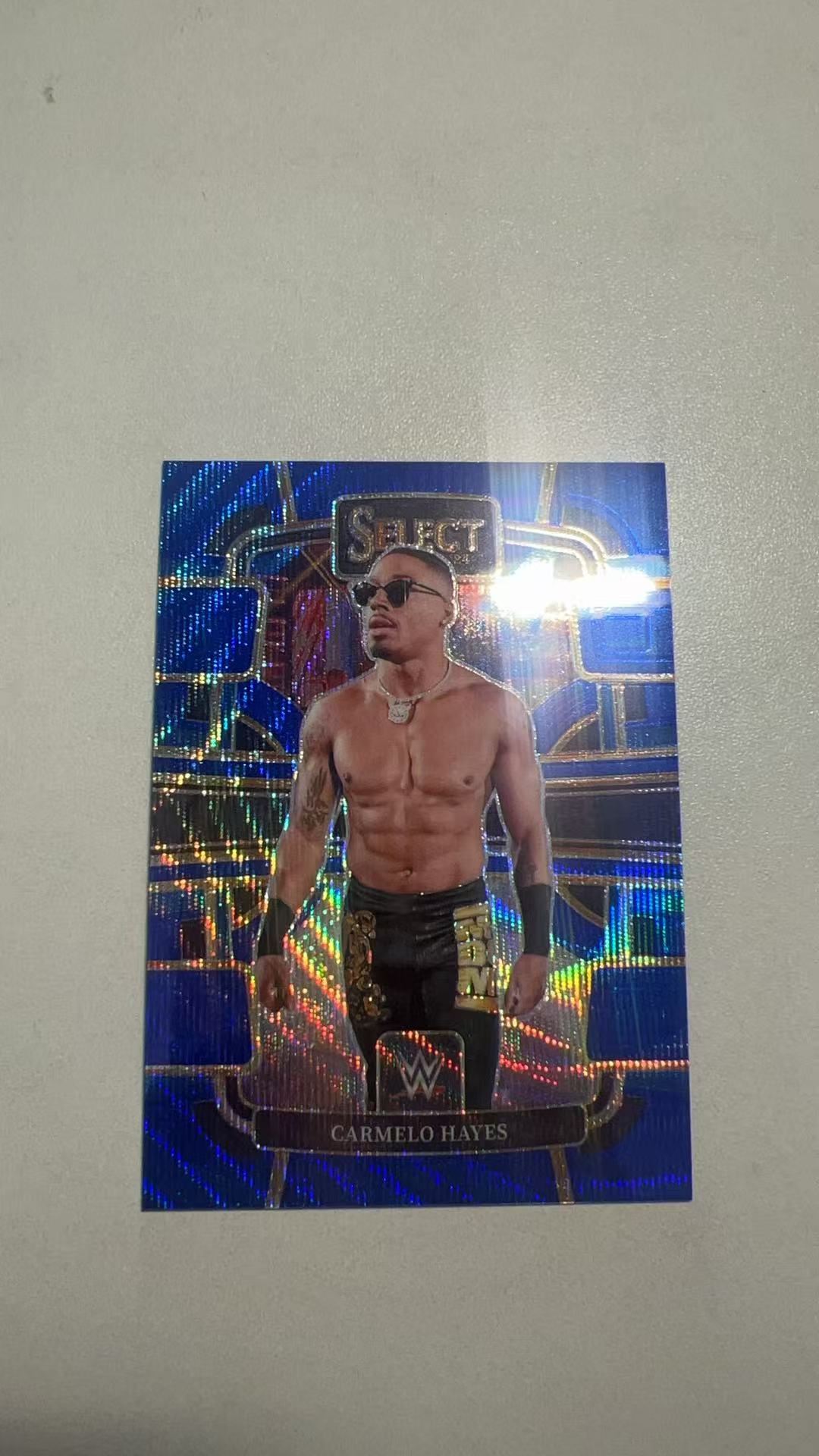 2024 Panini Select Carmelo Hayes 【颠包拍卖】WWE 美国职业摔角赛 卡梅罗 海耶斯 一级卡 蓝波纹 折射 49编【伍先生】卡品如图