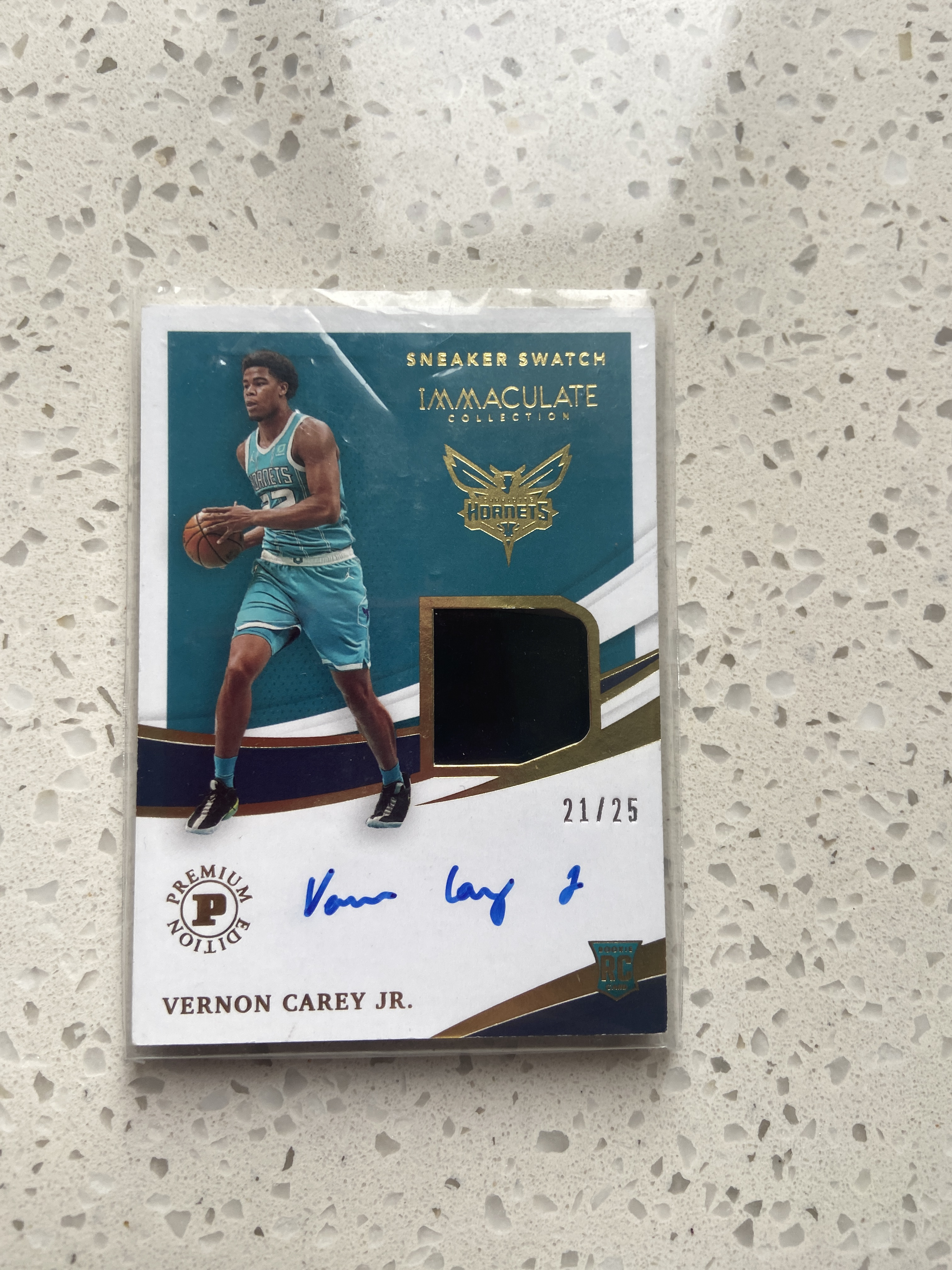 2020-21 Panini Immaculate Vernon Carey Jr. RC 黄蜂 新秀 弗农 凯里 签字 卡签 鞋切 实物 imm 25编限量