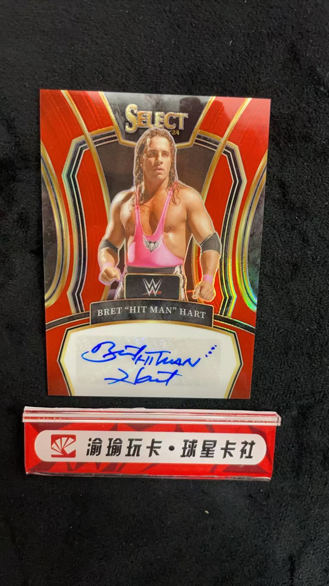 【大聪明拍卖】马哥 2024 Panini select Bret "Hit Man" Hart WWE 职业角摔 布雷特 打手 哈特 红折 87/99编 签字 墨迹完整 卡品如图