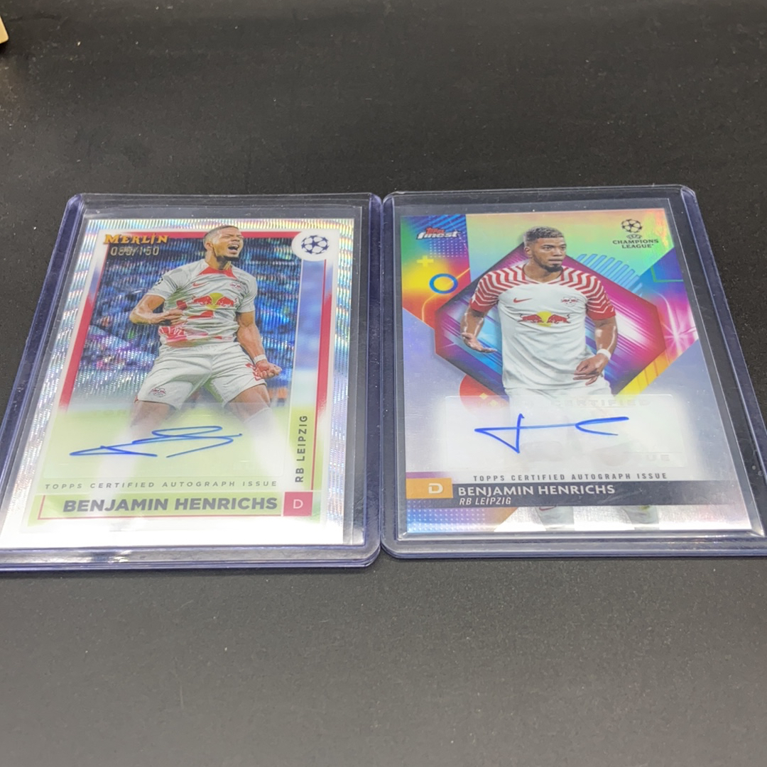 2023-24 Topps Merlin chrome Benjamin Henrichs 亨里希 莱比锡红牛 签字 签名 梅林 085/150编 finest 两张