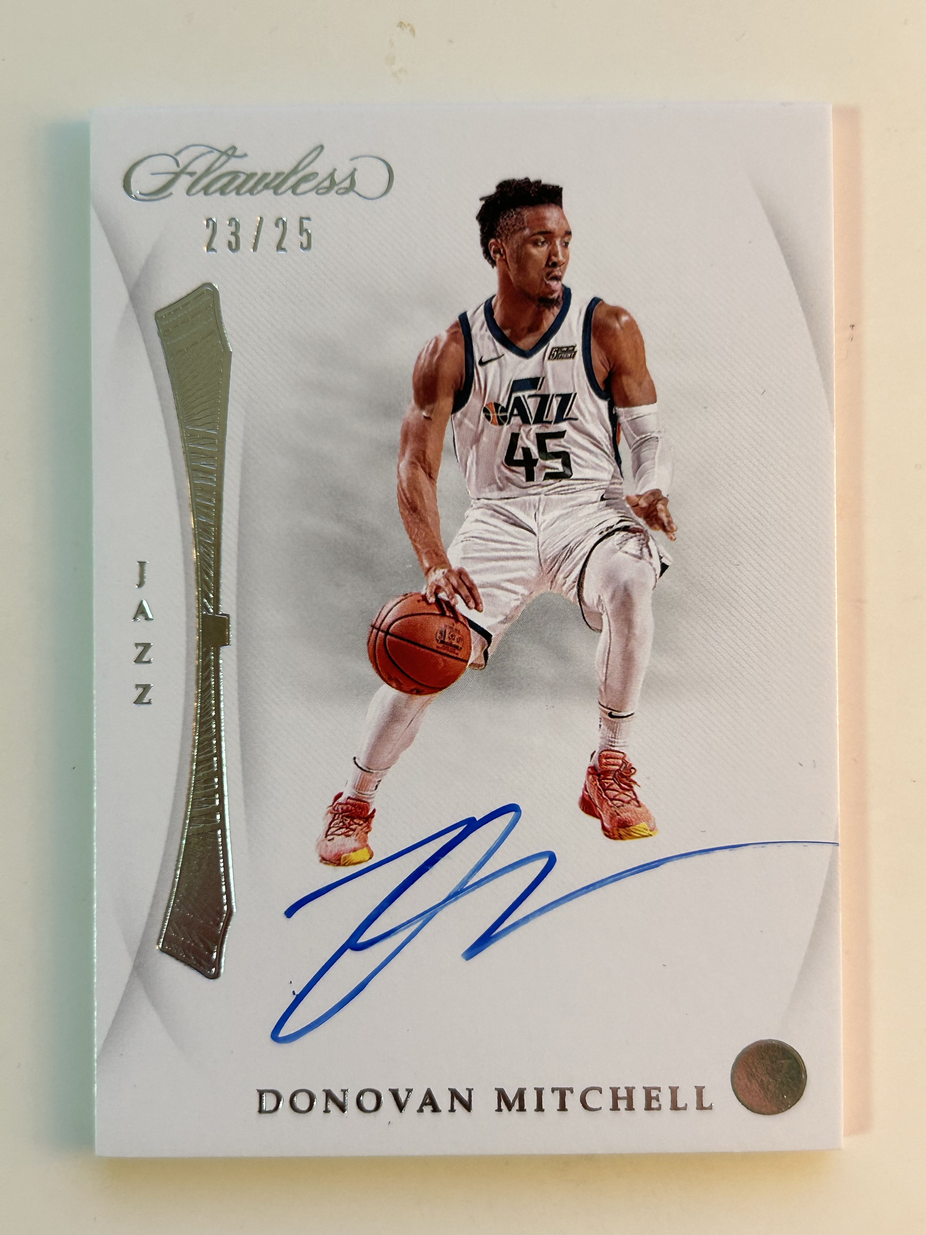 【卡卡吸】2018-19 Panini Flawless Donovan Mitchell 手提 攻防 进攻 米球 多诺万 米切尔 /25编 签字 卡签 克利夫兰骑士 犹他爵士 微瑕 细节如图
