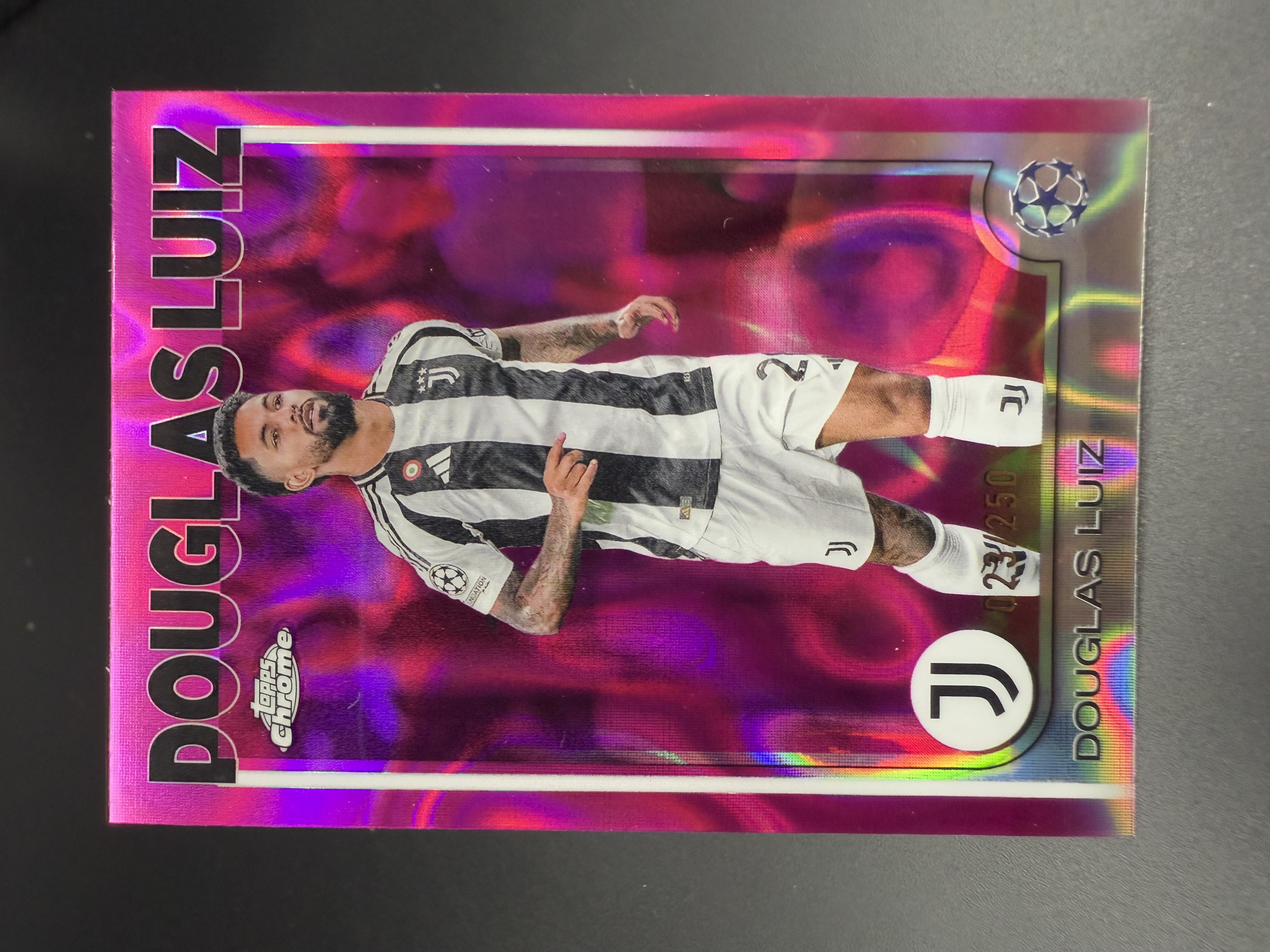 2025 Topps Chrome Douglas Luiz 【湖水蓝拍卖】道格拉斯 路易斯 尤文图斯 TC 欧联 粉熔岩折 折射 250编 维拉 拍前请阅读描述 summis