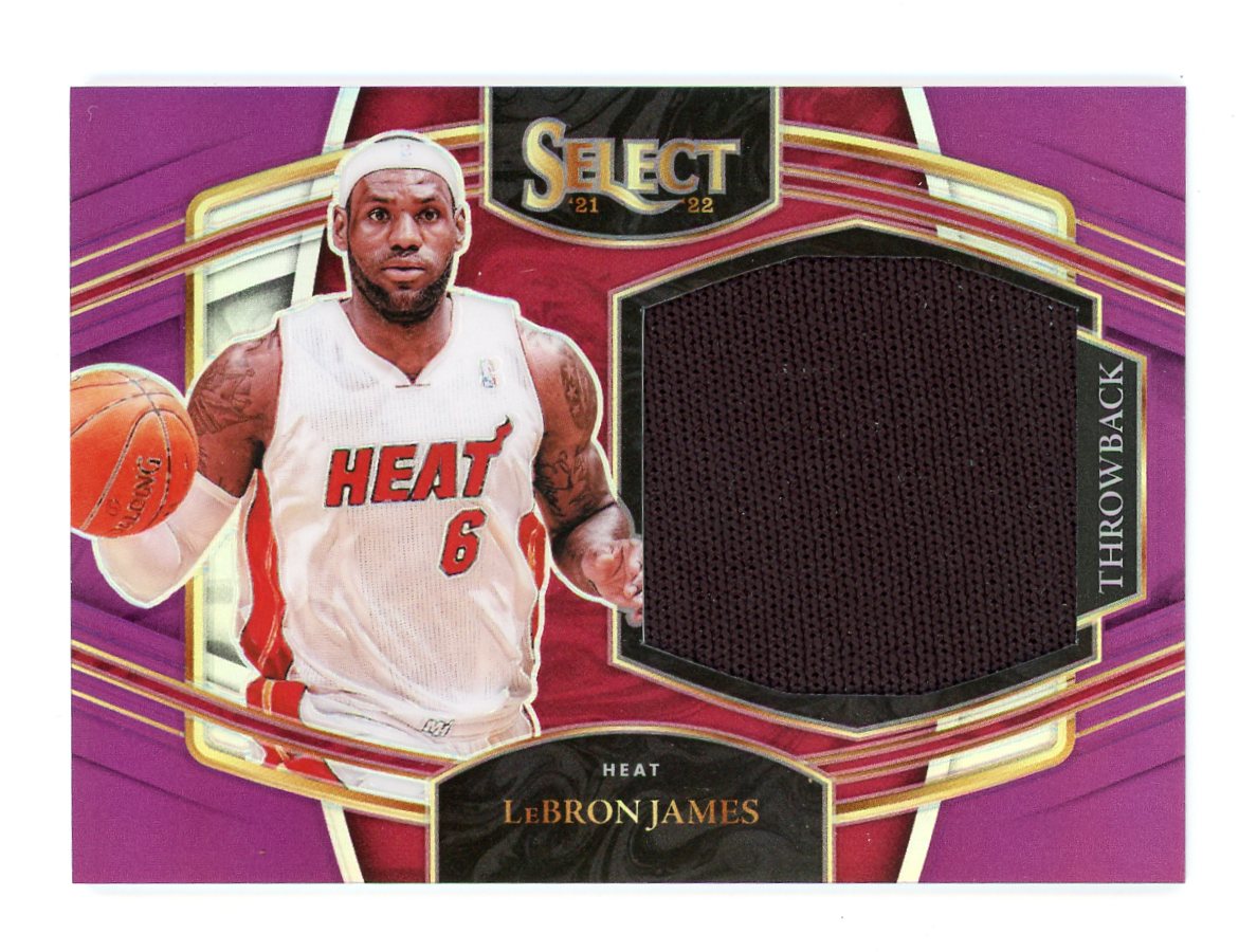 2021-22 Panini Select Basketball LeBron James Throwback Memorabilia Purple Prizms Jersey #'ed 92/99