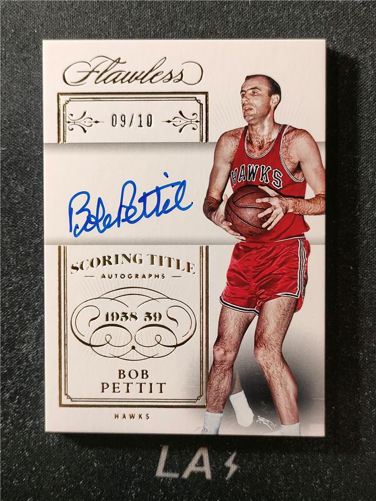 【LA拍卖】2023-24 Panini Flawless Bob Pettit 手提箱 高端系列 鲍勃 佩蒂特 老鹰队名宿 50大巨星 金版 Scoring Title 卡签签字 /10编 瑕疵如图 LC0666