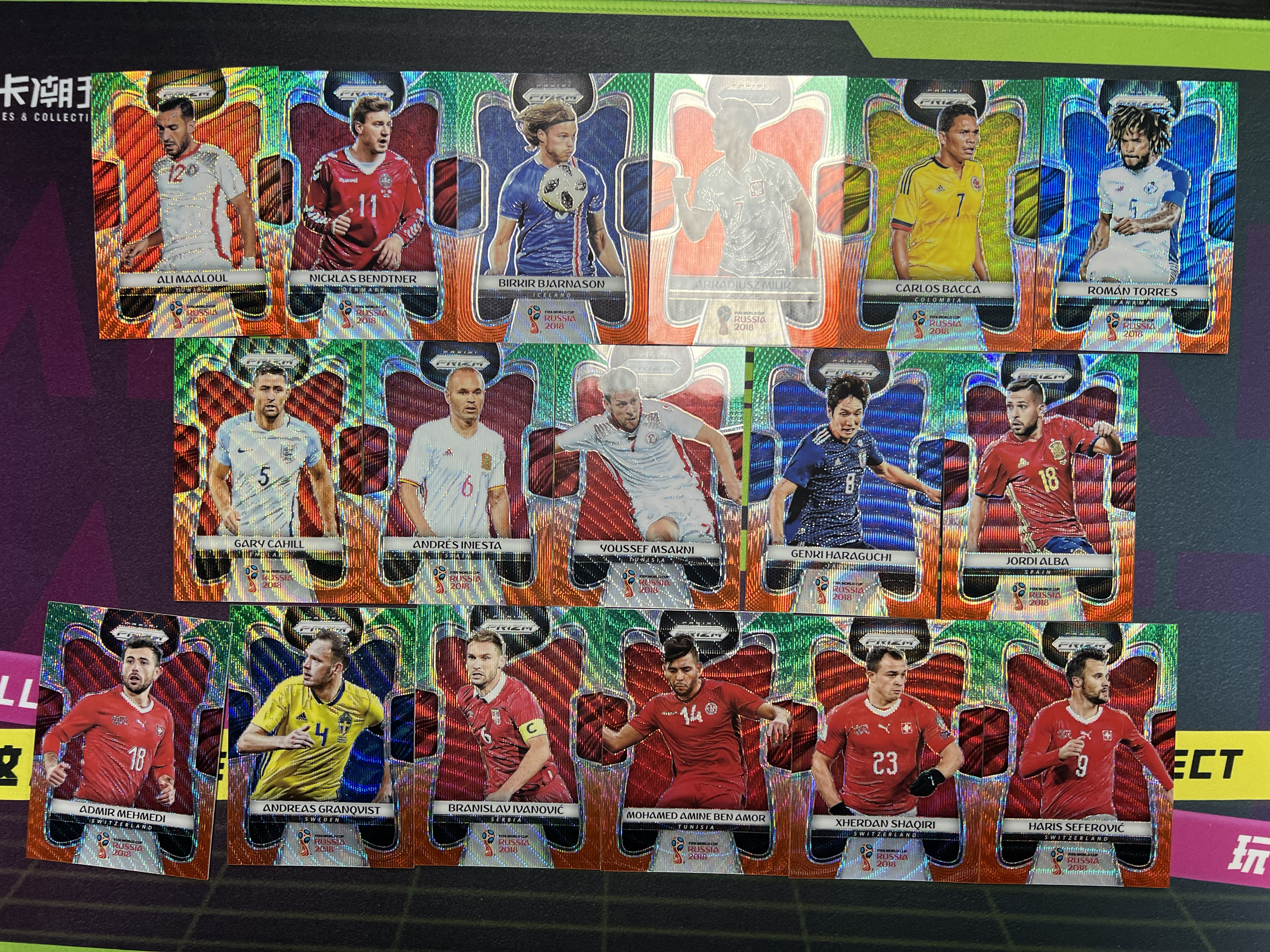 2018 Panini World Cup Prizm 打包14张 世界杯Base三色黄瓜折 丹麦本特纳 西班牙伊涅斯塔 英格兰卡希尔瑞士沙奇里哥伦比亚巴卡等等【趣集卡拍卖052702】