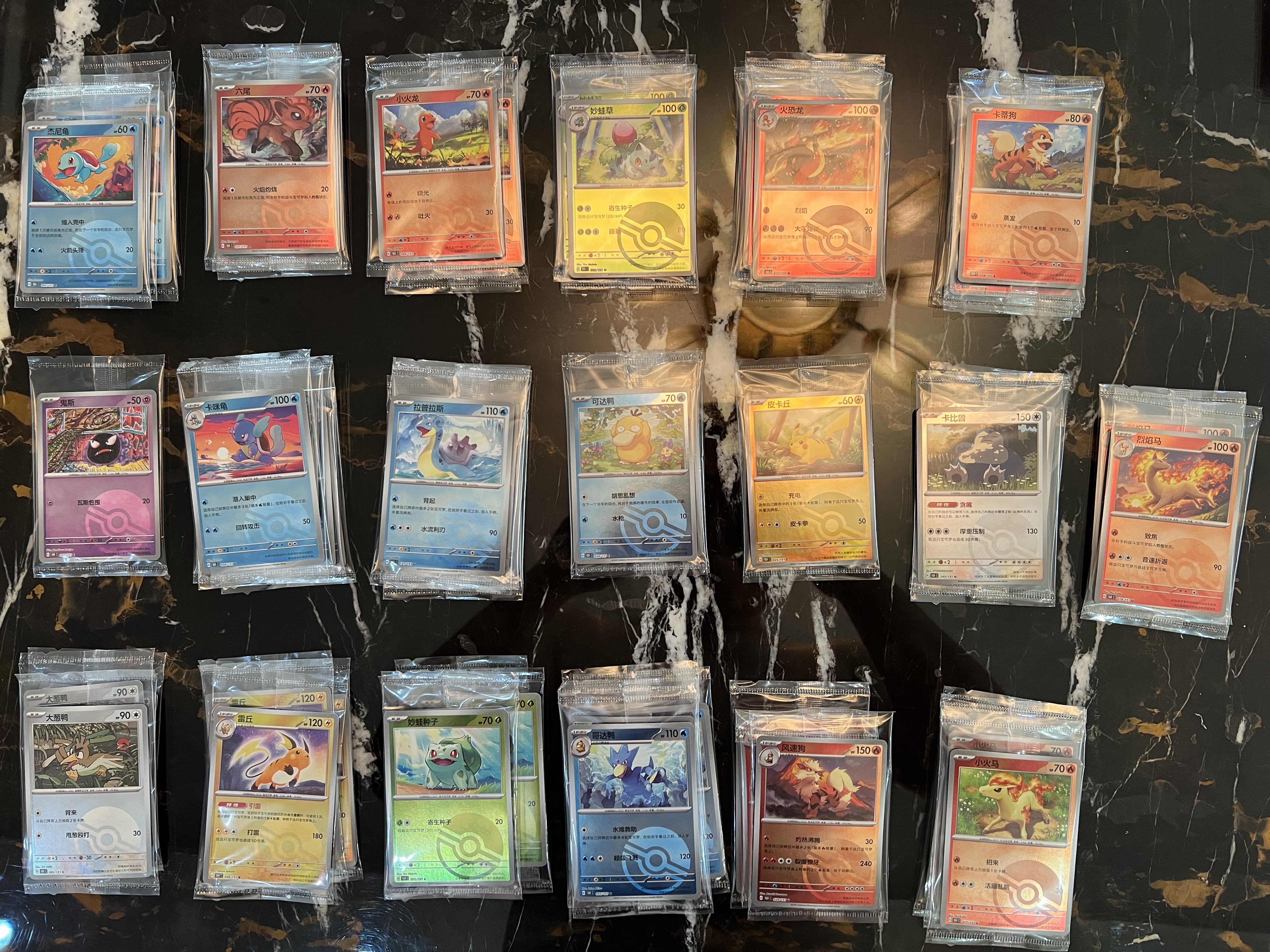 宝可梦 简中 151C 19张 原袋 精灵球闪卡!!打包!!皮卡丘、御三家!!卡非常有质感!!凑套必备!!值得收藏!!