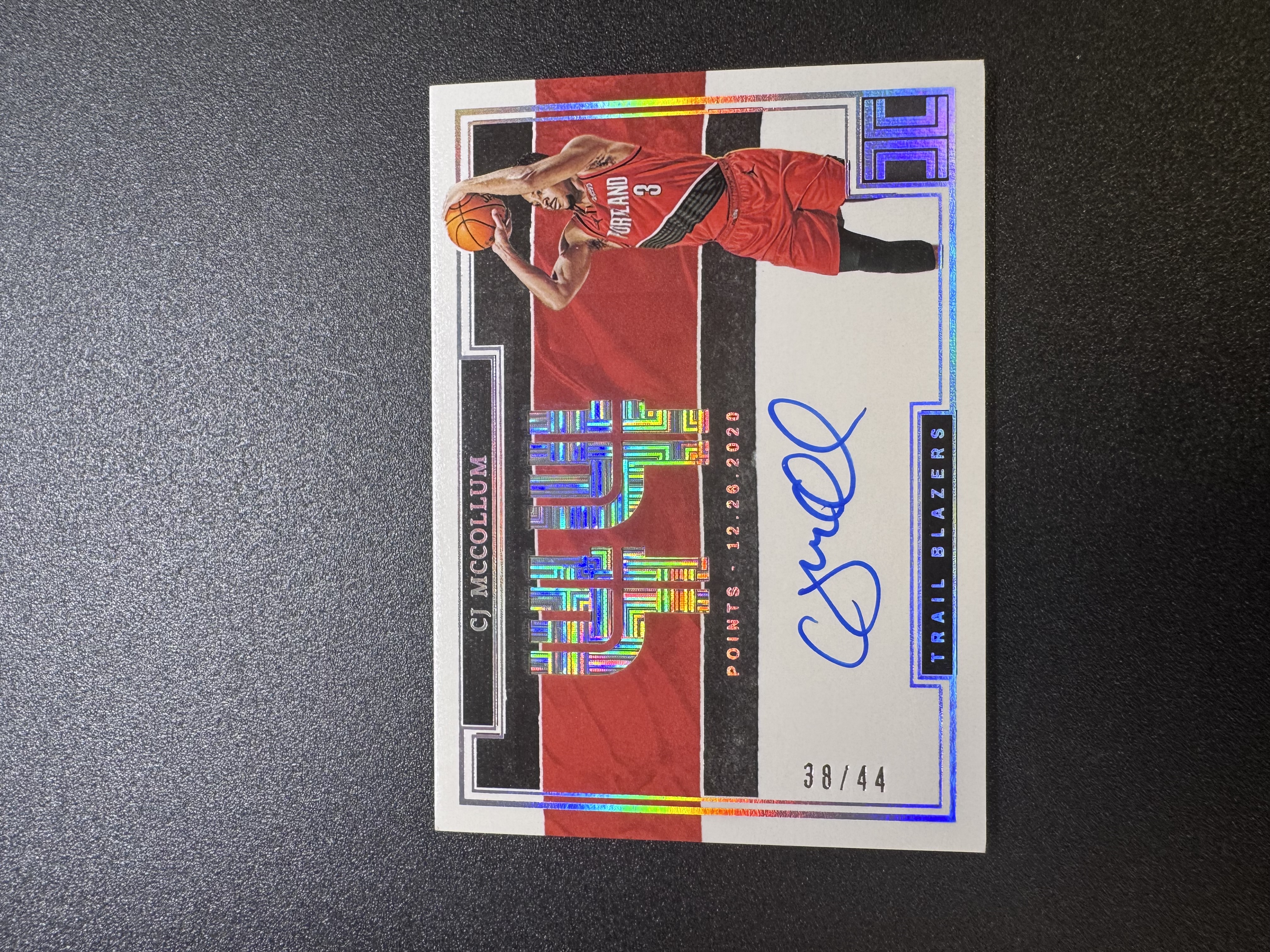 2021-22 Panini Impeccable CJ McCollum 小真金系列 CJ 麦科勒姆 投射最全面得得分后卫 开拓者 卡签签字 数据签 闪版 /44编
