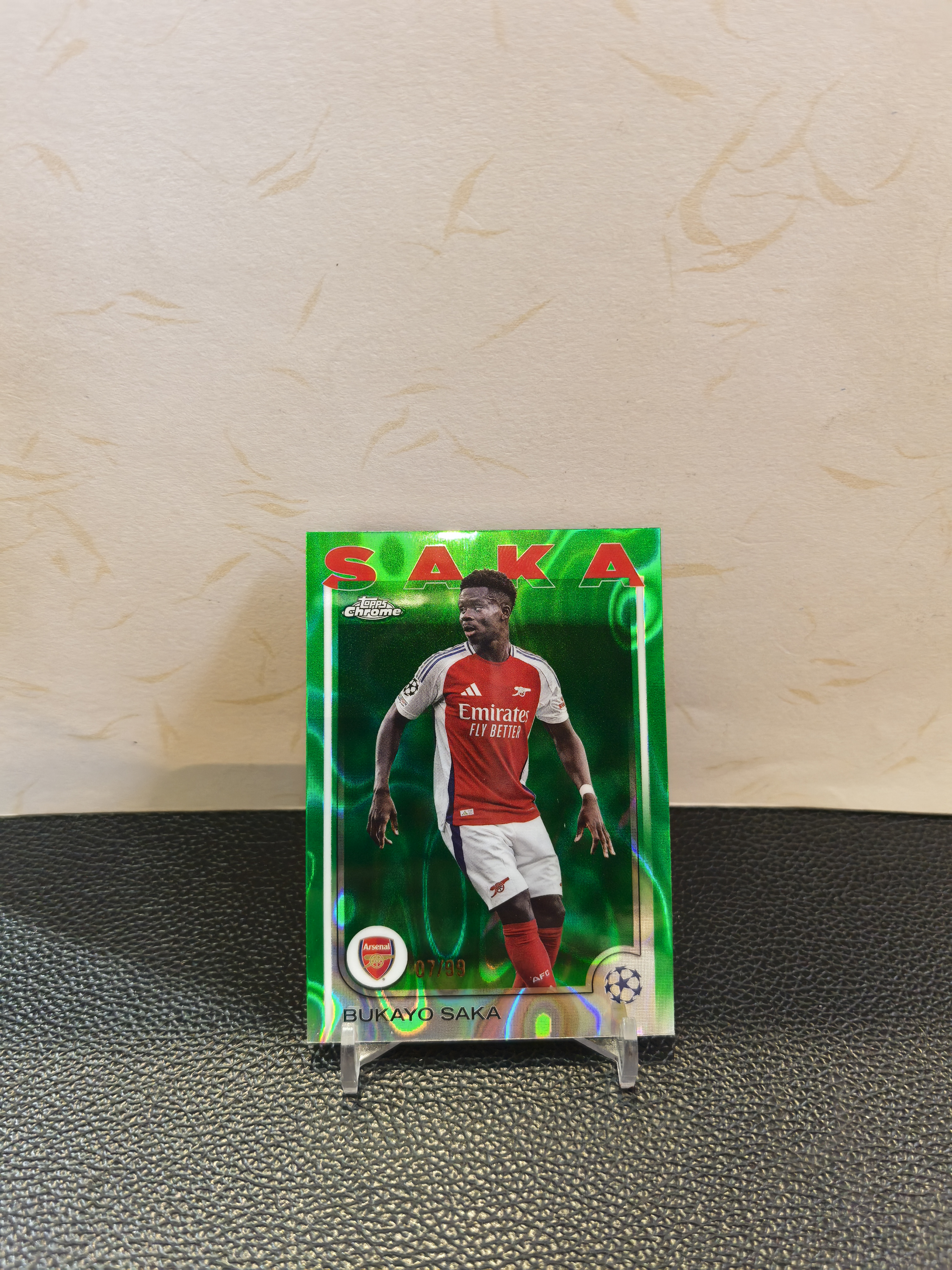 2025 Topps Chrome Bukayo Saka 欧冠 TC 新系列 阿森纳 布卡约 萨卡 绿熔岩折 base 07/99编 同背 卡品如图 收藏必备 印刷线