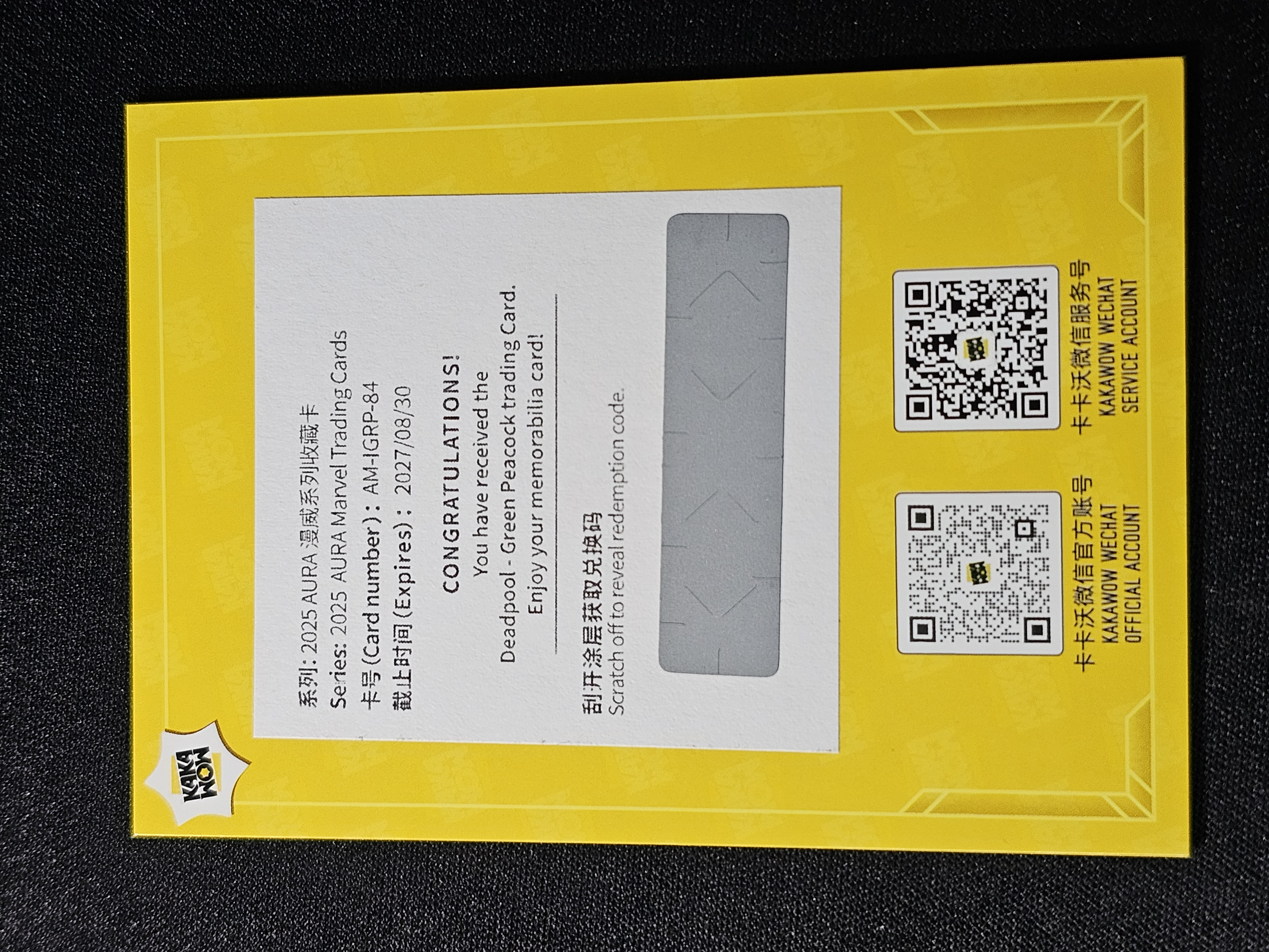 【KR拍卖】2025 KAKAWOW 卡卡沃 Marvel (MCU) 漫威 AURA 死侍 签字 兑换卡 Green Peacock 绿孔雀 Deadpool Script 25编 崔CHM